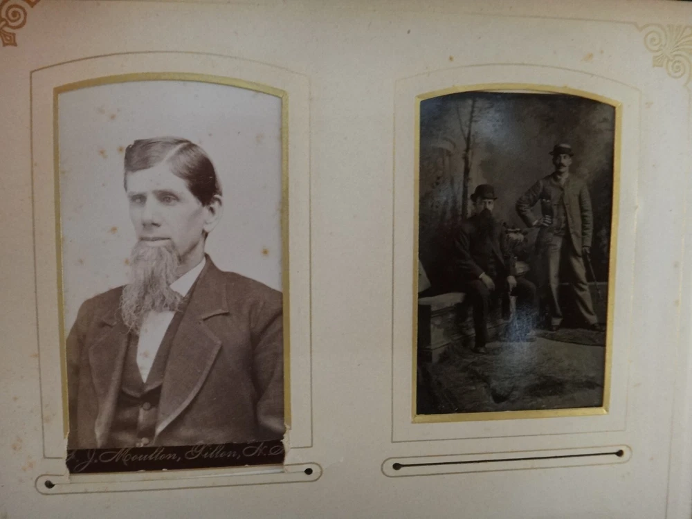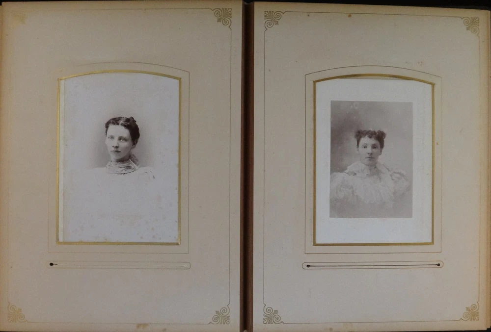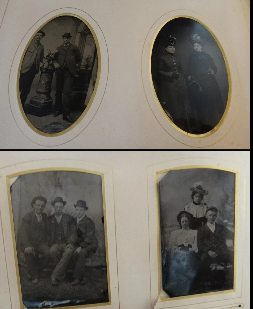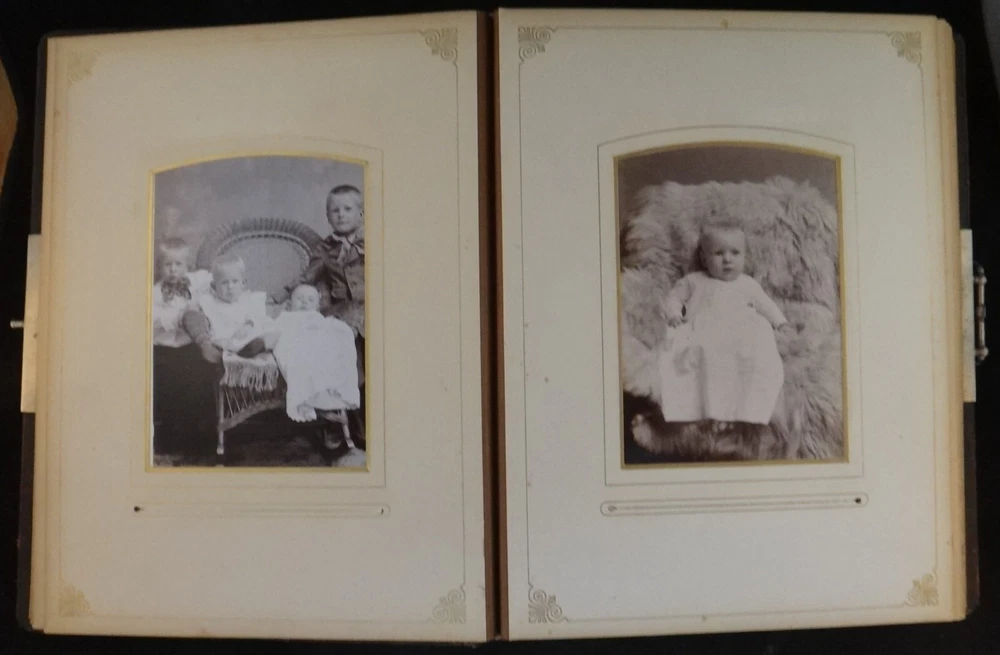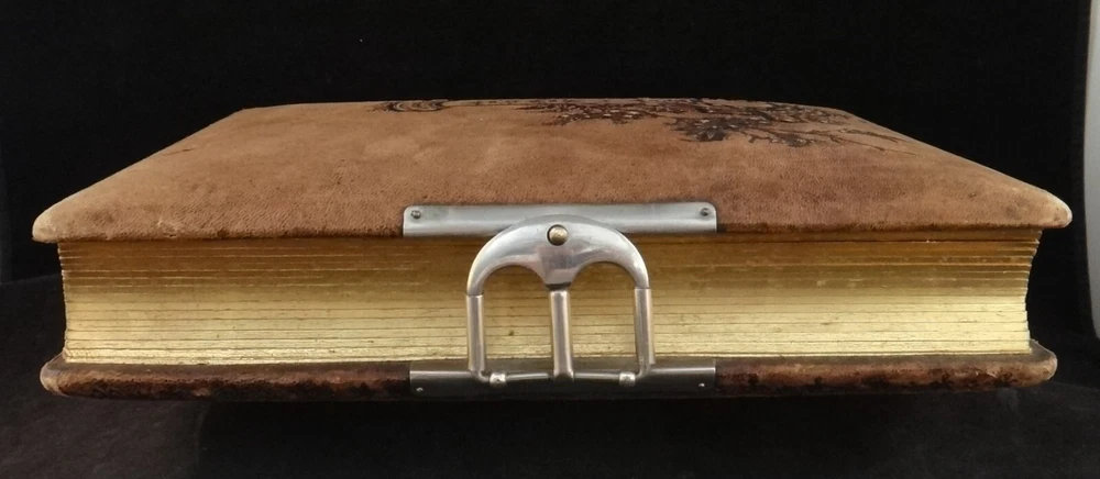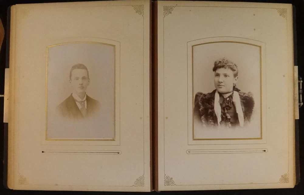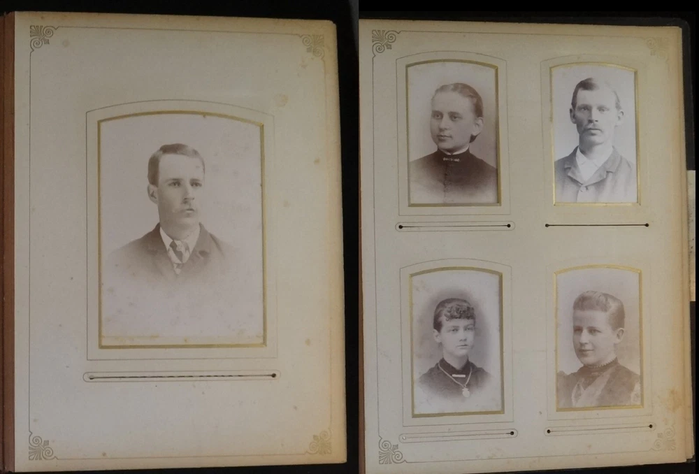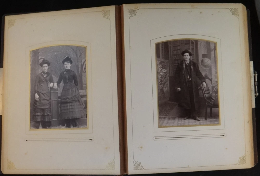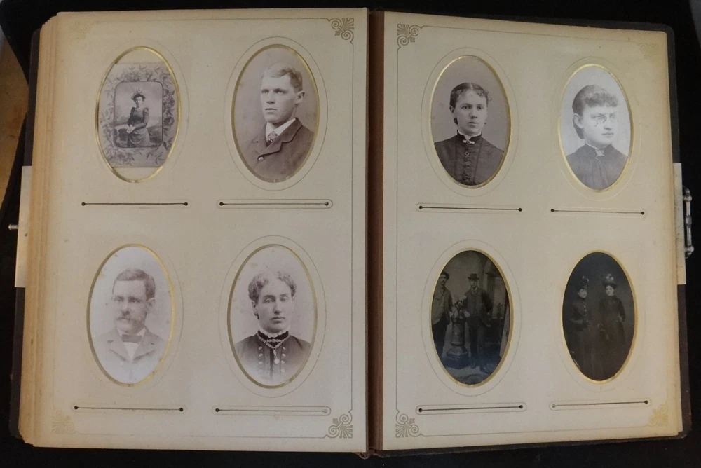 Antique - 1800’s Family Photo Leather Album with 39 Photos. Leather bound album with embossed suede cover and rear leather along with metal clasp. Features thick page substrate with 23- Cabinet Cards (5 ½” x 4”), 11 – 3 ½” x 2” and 5 Tin Types. All photos are c. 1800’s. Most photos are in very nice condition with a few with light foxing. Substrates are yellowed with some foxing. Fading & wear to album . Photos were not taken out of sleeves. sku # 10050 Please click the below link to visit my eBay store The photographs are an important part of the items condition. Please review to verify and email us with any questions Combine items for possible shipping cost reduction. Please e-mail us to determine cost and wait for a revised Invoice before paying. International Buyers - Please Note: Import duties, taxes, and charges are not included in the item price or shipping cost. These charges are the buyer's responsibility. Please check with your country's customs office to determine what these additional costs will be prior to bidding or buying . We ship Internationally through USPS (United States Postal Service). Your country’s postal will use the same tracking number. If you do not get a notice for Customs Fees in a reasonable time, please contact your local customs/postal office to help finalize the delivery.
