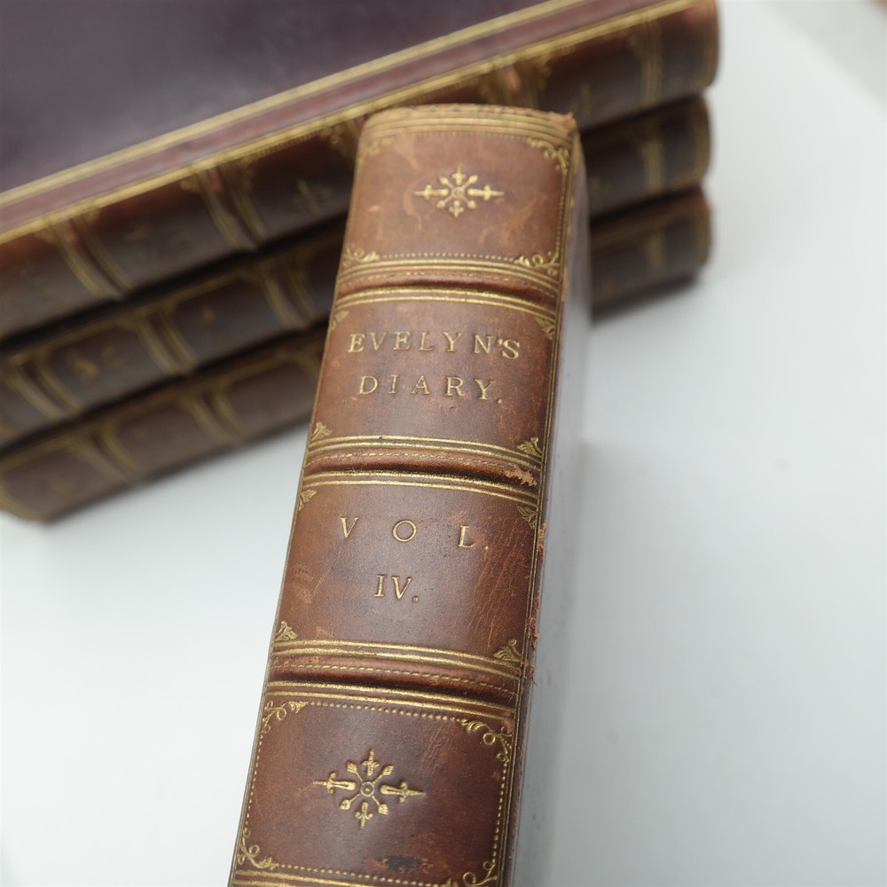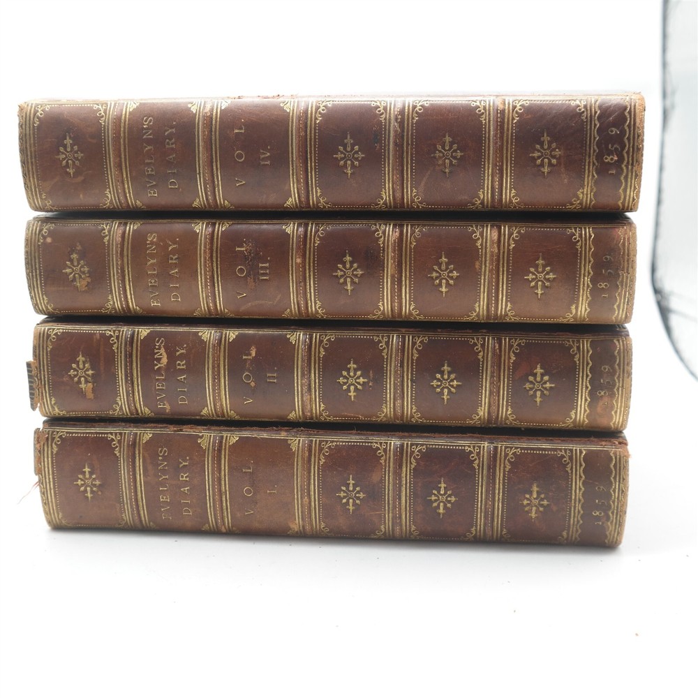 This is a very nice four volume set of full Leather bound books entitled Evely's Diary. The issue is volume one's cover is torn at the seam (as shown in the 11th image). They measures 5" X 7" and will come exactly as shown. Powered by SixBit's eCommerce Solution