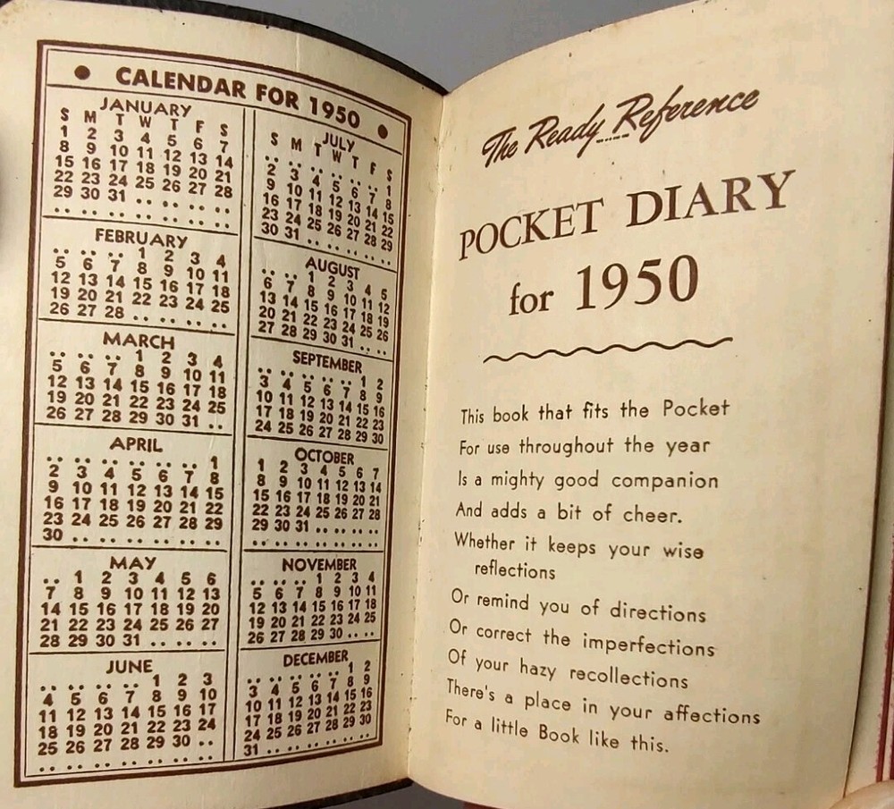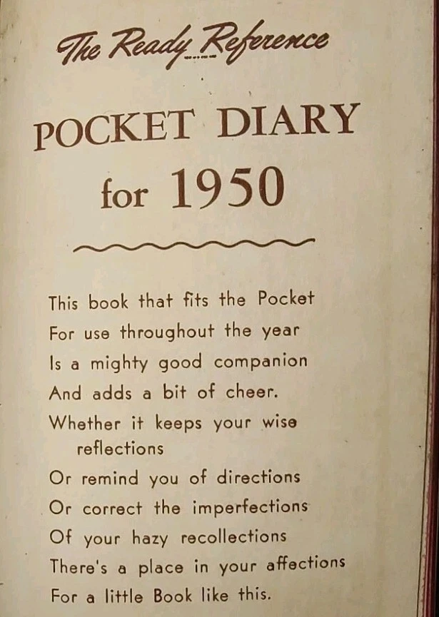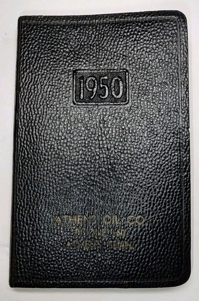 Delve into the past with this authentic 1950 Daily Pocket Diary Journal, a tangible piece of history! It features the Athens Oil Company in Tennessee. Its leather binding exudes a vintage charm, while the pages offer a glimpse into the 1950's era. This original diary, published by The Ready Reference, is an excellent find for collectors and history enthusiasts alike. With its focus on historical subject matter, it features a lot of history of presidents, ledgers, first aid and it serves as a unique testament to the mid-20th century North American lifestyle, making it a valuable addition to any antiquarian collection. The only writings are in my photos. The personalized sections are left blank! It's in great shape for its age, as seen in my photos! Thanks for looking! 😊
