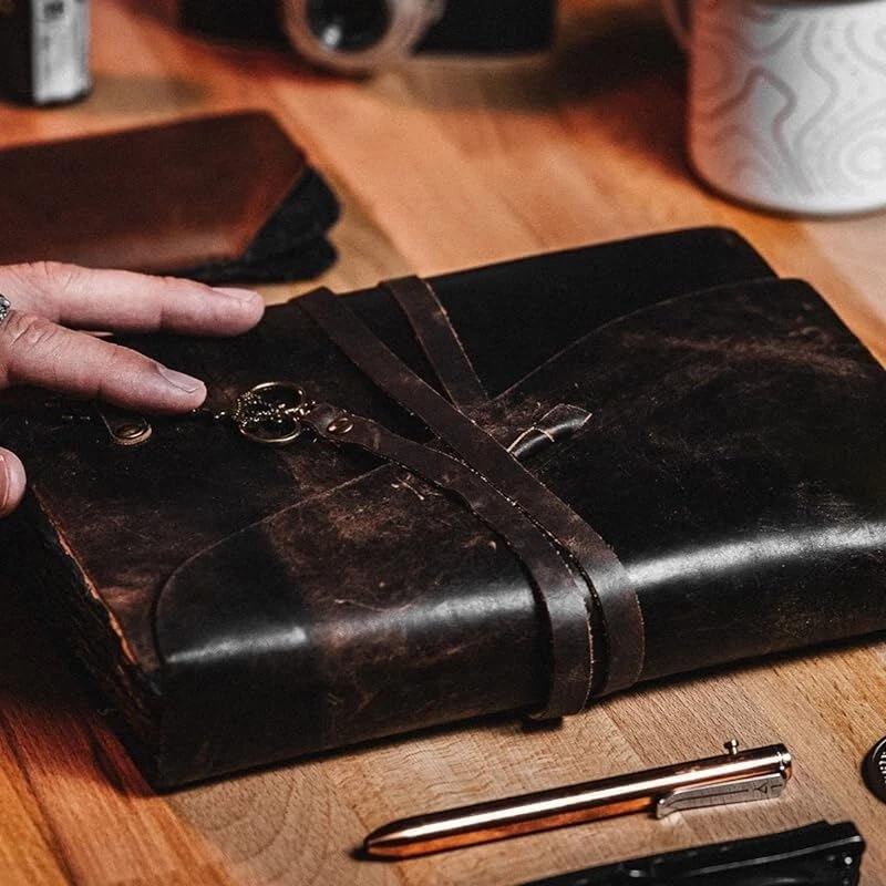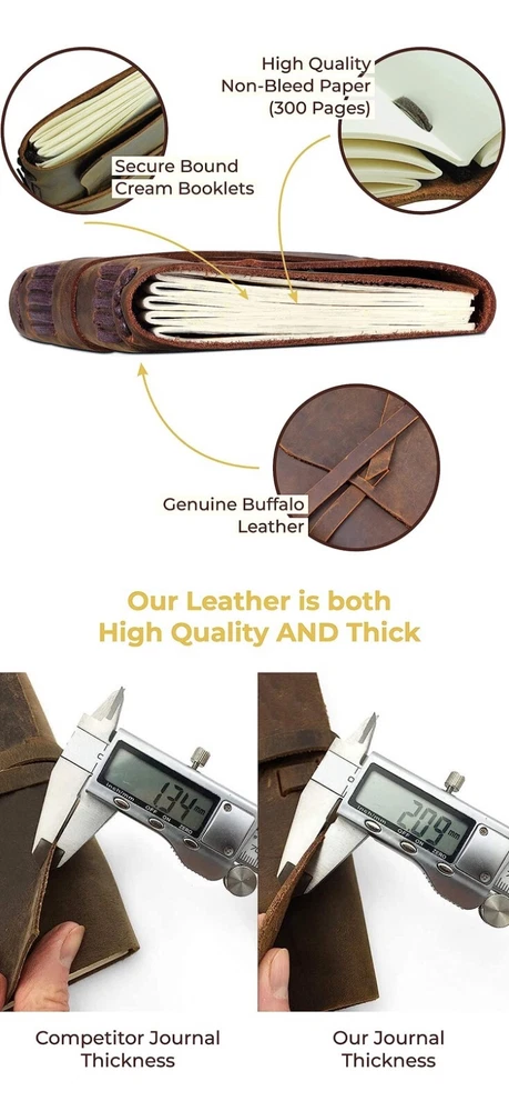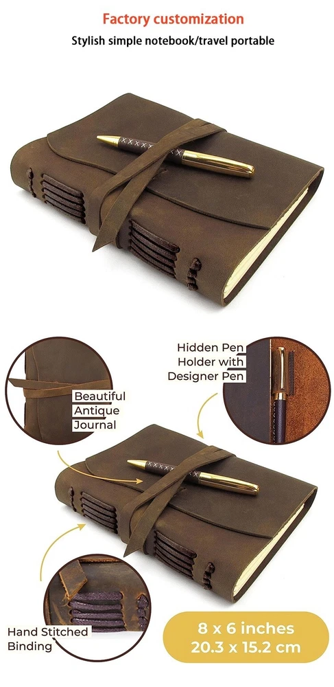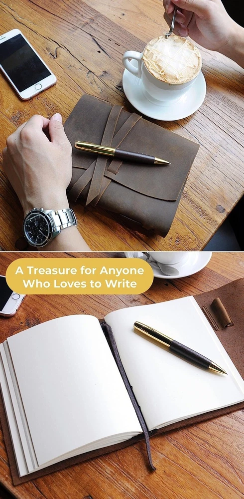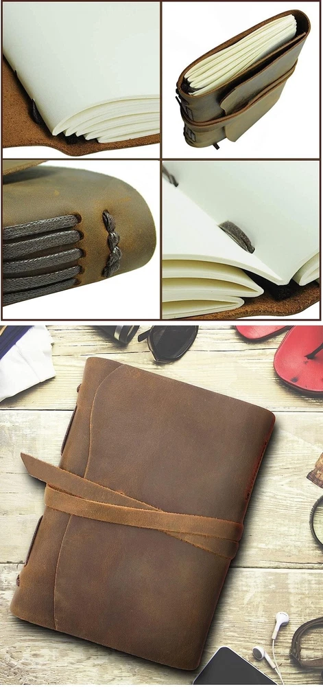 PERFECT HANDCRAFT JOURNAL - Made from 100% Buffalo Leather with Antique Deckle Edge Paper. This Book Is Hand Crafted by Artisans Working with Leather for Decades. The Color of The Journal Is Very Unique Vintage Brown. USE ANY KIND OF PEN - Write/sketch/doodle on your journal notebook with a Fountain Pen CalligraphyPen, Ball Pen, Brush Pen, Acrylic Colours, Watercolor. IDEAL USE AND PERFECT GIFT – Perfect Use for Business Executive, Poetry Work, Journalists, Craftsman, Writer. A Lovely Treat for Your Loved Ones for An Anniversary, Birthday or Graduation Present, Or for Someone Starting A New Adventure and A Perfect Gift for Those Who Love Vintage One. DIMESNIONS – (6” X 4” X 1.5”) With Uncut Deckle Edge Paper, Easily Handle Notebook, You Can Fit with Minimum Space, Easily Handle in Long Journey. Once You Have Used It You Will Feel Like You Have the Best Journal in the World. BINDING AND KEY BOOKMARK – Binding Is Made by Hand Stitching Which Having Enough Strength That the Paper Never Comes Out. The Key Is Very Antique Can Be Used as Bookmark. The Leather Strap Wrap Around the Journal Is Complete Solution for Paper Safety and Open-Close the Journal. The Journal Made by High Quality Buffalo Leather and Paper Have Been Used Is Vintage Historical Paper Which Is Very Durable. Each pack Contains 1 Item based on your check out count of selection **************************