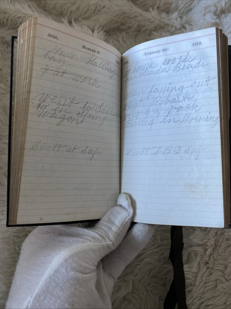 This antique handwritten diary journal is a rare find for collectors and enthusiasts alike. The pages hold the secrets of a bygone era, with descriptions of daily affairs around Sacramento, California in 1879. The leather binding adds to its durability, making it a sturdy and valuable addition to any collection. The diary is in its original form, with English language and special attributes of handwritten text. It falls under the category of Books & Magazines, Antiquarian & Collectible, with a topic of Diaries & Correspondence and a subject of Life. This diary is a precious piece of history, perfect for those who wish to dive into the past and experience the stories of a forgotten era. Some of the topics include: Astronomical calculations Calendar Interest tables Wages California population 560k Cities NY, NY 926k Hand written Buggy trips to Sacramento, San Francisco etc Wages and money transactions Many daily life journal notes
