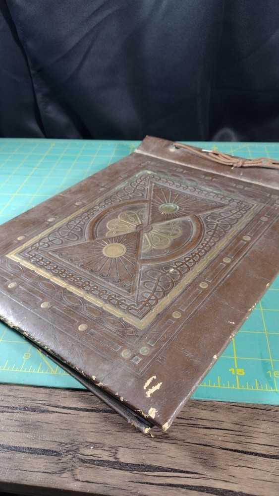 Antique Leatherbound Embossed Art Deco era Photograph Scrapbook Photo Album