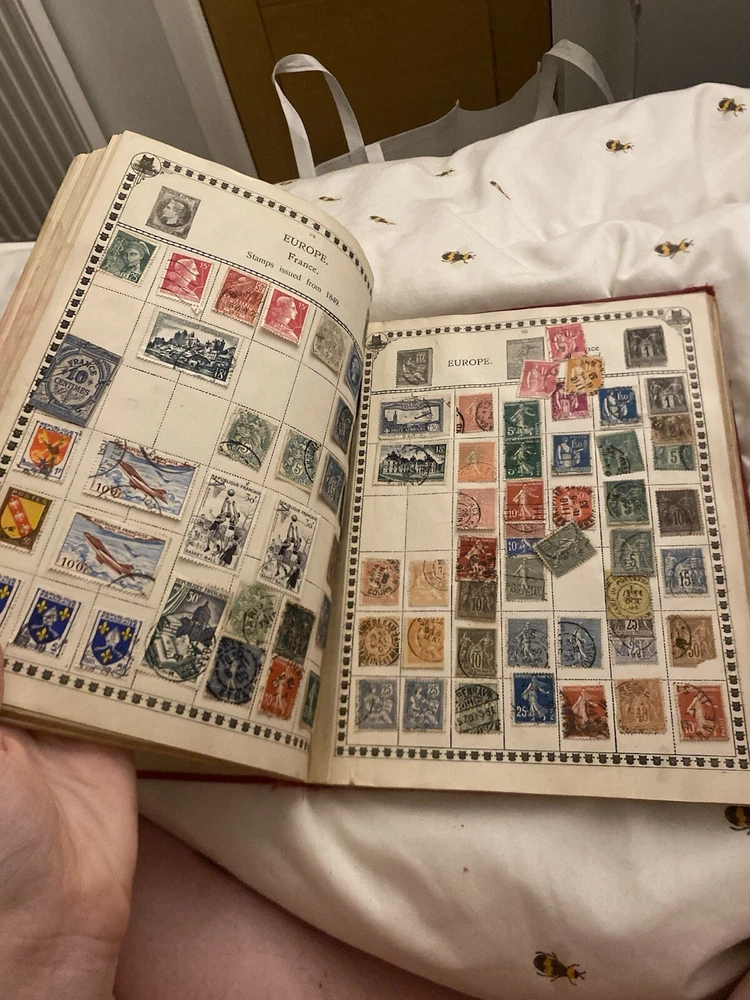 Picked this up in England. Absolutely amazing. Stamps from all over the world dating to the 1800’s. Edge does show wear. Advertisements are amazing