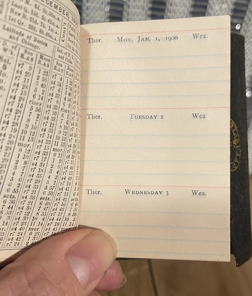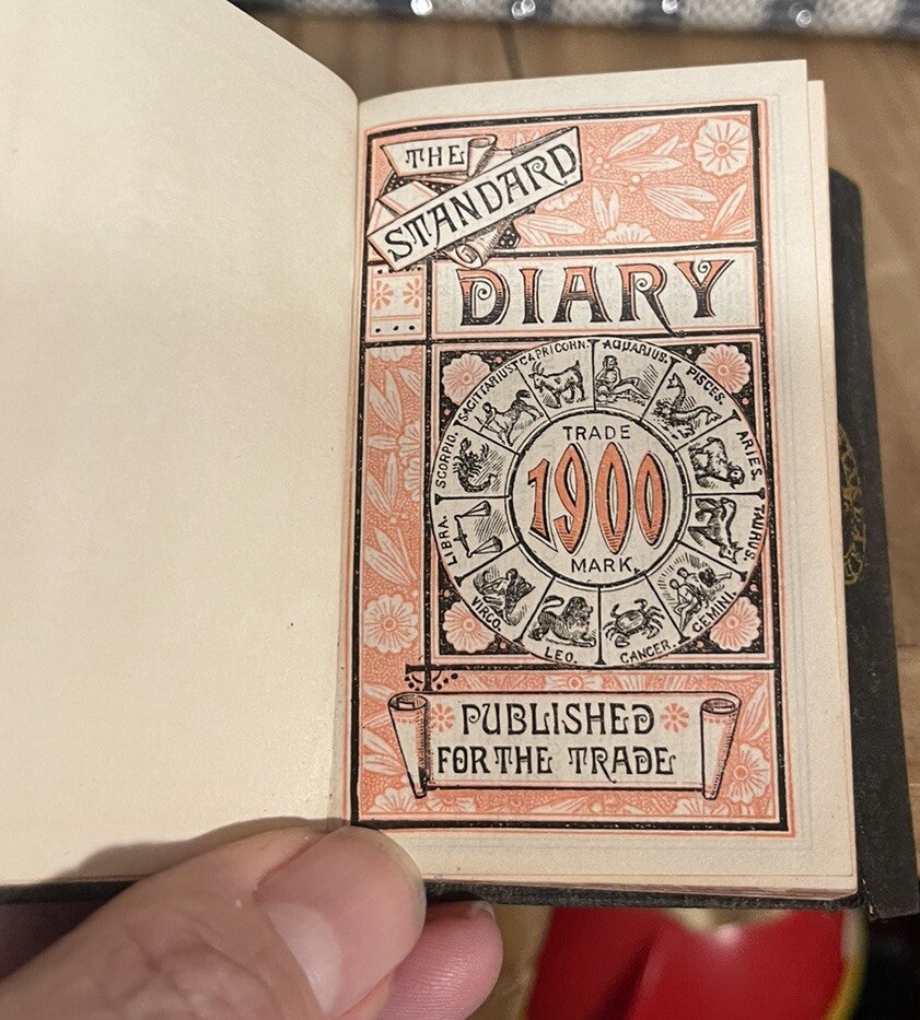 This is an antique Standard diary published in 1900, featuring a leather binding. The diary is unused and in its original form. It is written in English and would be a valuable addition to any collector's inventory. In great vintage condition