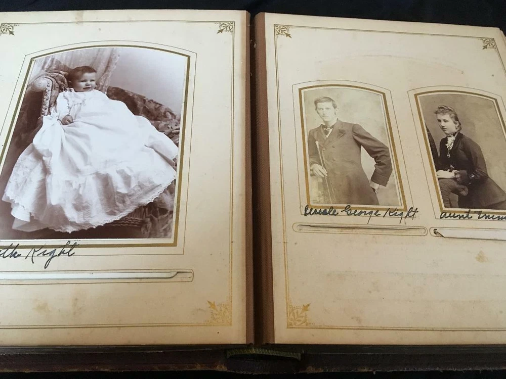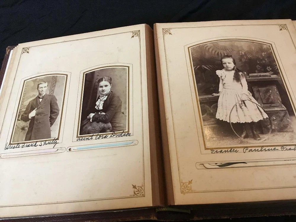 This antique Victorian leather-bound photo album features stunning black and white photographs of a Shipman, Illinois family. The album is a single piece and measures small, up to 7 inches. The year of production is 1900 and the album is an original print. The leather material gives it a vintage feel, but it is not signed and was manufactured in the United States. The album is perfect for collectors of photograph albums and photographic images. It falls under the category of vintage collectibles, but is not considered a vintage item. The subject of the album is a family and it is an excellent addition to any collection. This album is the family album of Francis Pauline Fisher from Shipman, Illinois. Francis was born January 23, 1882 in Shipman, Illinois. She is the daughter of William Albert Fisher and Nancy Jane Fisher, both of Shipman. The family photos appear to from a professional photographer and are absolutely wonderful. There are over 50 pictures including one or more of her Grandmother Shultz, Aunt Cora Dodson, Nancy Jane Fisher, William Albert Fisher, Aunt Chisty Fasold, Uncle Frank Shultz, Ruth Knight's baby picture, George Knight, Emme Knight, George Brown's baby picture, Minni Fasold's baby picture, Aunt Jessie Shulrz (Uncle Frank's first wife), Dr. Springler (pictured as a child) noted he babtized Francis and was a part of the Lutheran Ministries. Grandmother and grandfather Fisher, Roseline Klipstein Gaylor, Grandmother Shultz, Hamp Arnst (cousin), Norman Brown, Norman Brown Sr. with Norman Jr. and Clotilda Aunt Alice Shultz, Aunt Cheaty Shultz, Roseline klipstein Gayor's baby pictture, Uncle Billy Klipstein (Roseline's father), John Boswell, Francis Pauline Fisher at various ages in her life. There are several pictures without notations of identity. The spelling of these names may be incorrect because it was difficult to read her notes.