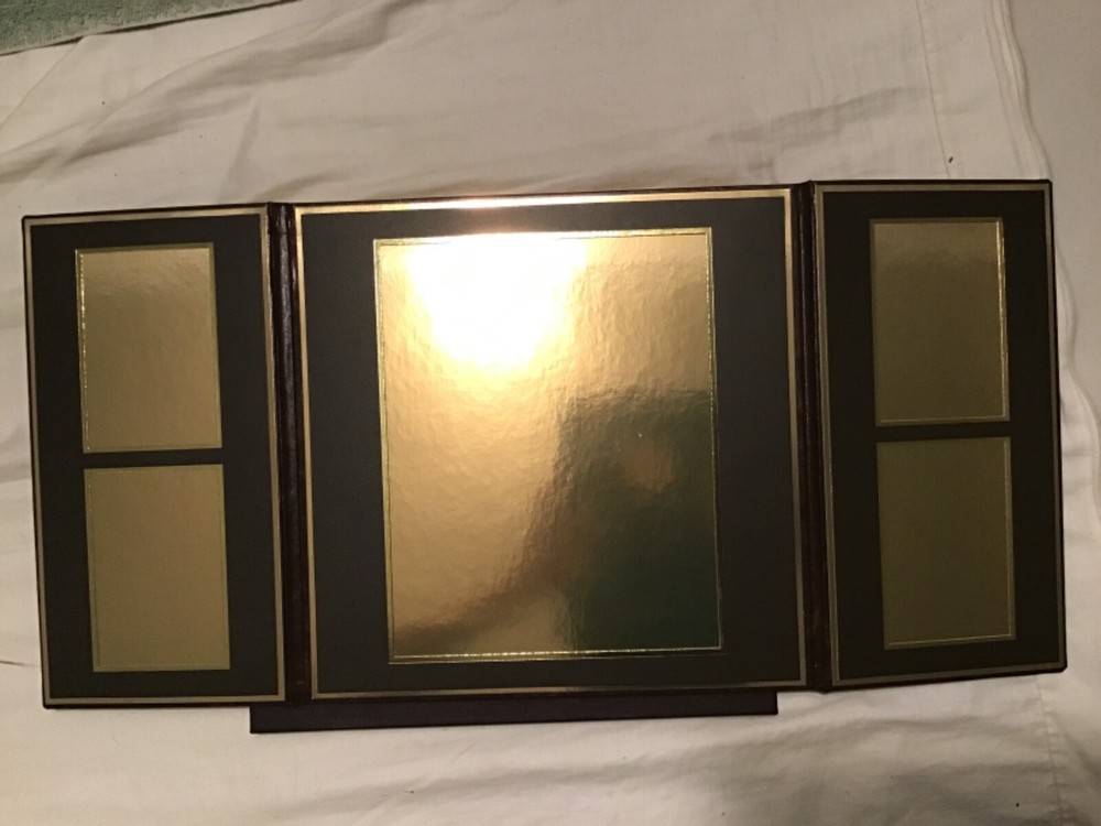 New Picture folio consisting of a one 8 x 10 in the center and four placement for 3.5“ x 5“ photos in vertical position. The measurements Ones folded it is 12” x 12”. More than 10 available. The Price is stated here is for one folio. only.. I have more than 10. 10% discount if you purchase more than 4. Also for each additional folio more than 1, please add $5 for each extra copy for shipping cost.