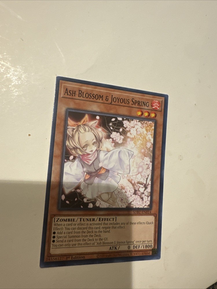 The Ash Blossom & Joyous Spring SDCB-EN014 Structure Deck: Legend of the Crystal Beasts is a Yu-Gi-Oh! TCG card set featuring the character Ash Blossom. This Fire attribute card is a Common / Short Print LEGEND card with a high defense of 1800. Manufactured by Konami, this 1st Edition card is an Effect and Tuner card, making it a valuable addition to any collector's deck. With its English language text and unique design, this card is sure to enhance any player's gameplay experience.