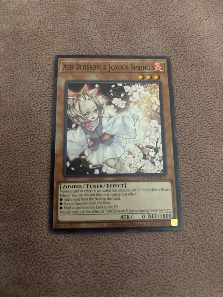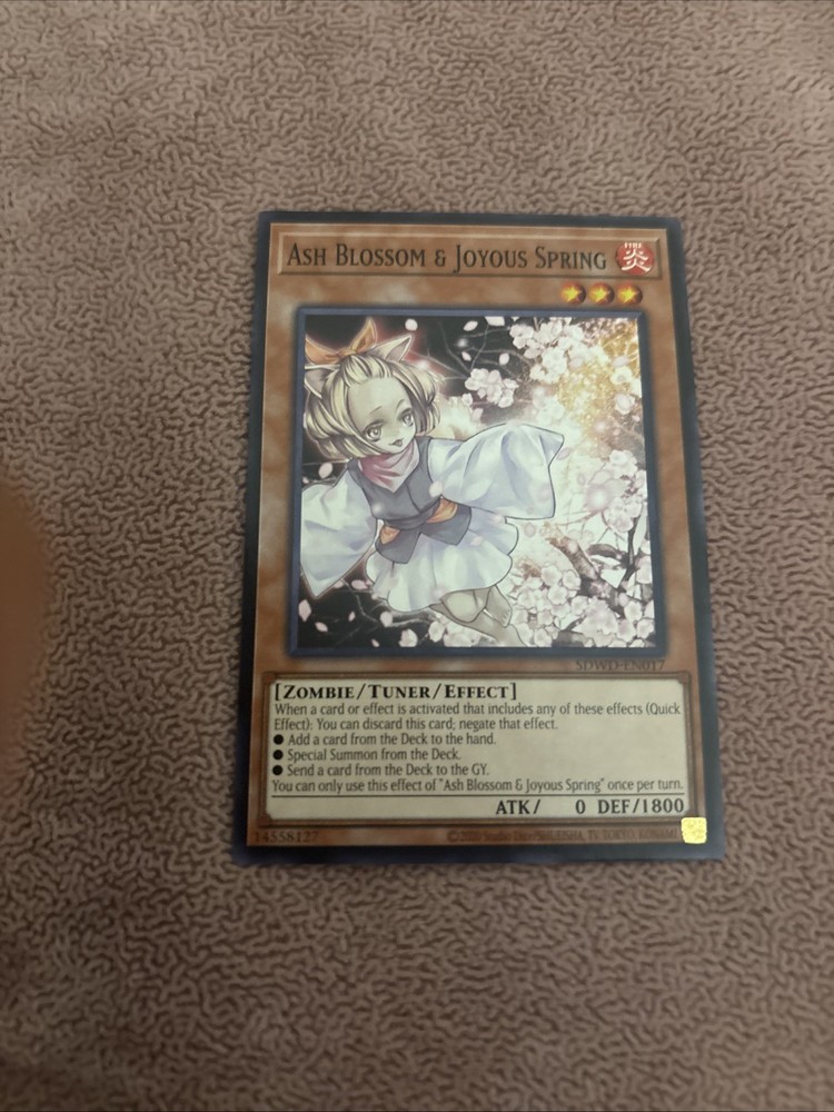 Up for sale is a rare Yu-Gi-Oh! TCG card called Ash Blossom & Joyous Spring, from the Structure Deck: Blue-Eyes White Destiny set. This card is a 1st Edition, Effect, and Tuner type with a card number of SDWD-EN017. It has a defense/toughness of 1800 and an attack/power of 0. The card is in the English language and was manufactured by Konami. This card is perfect for any collector or player of the Yu-Gi-Oh! TCG. It features a beautiful design with vibrant colors and intricate details. Don't miss your chance to add this rare card to your collection or deck.
