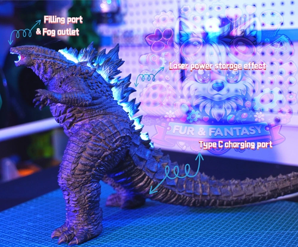 This Item is Made by Order need 1~2 weeks to ship out from LA. Godzilla universe with our meticulously detailed humidifier and essential oil diffuser. This impressive peripheral blends artistic craftsmanship with practical utility, tailored for both collectors and everyday use. 🌟 🔹 Multifunctional Use: Beyond a collector's item, this device acts as a functional humidifier with dynamic lighting effects to enhance your living space. 🔹 Advanced Features: Includes a 100ml water tank for over an hour of continuous humidification. Features dynamic light effects on the back and a mouth that emits a steady mist to effectively increase air humidity. 🔹 Ready for Dispatch: Secure your unit now and be one of the first to showcase this Godzilla-inspired masterpiece in your home. Measure: 9.44*8.26*8.66 inches Unleash the power of Godzilla in your space with our innovative humidifier and essential oil diffuser! This unique product combines functionality with fan-favorite design, making it a must-have for any monster universe enthusiast. 🐉
