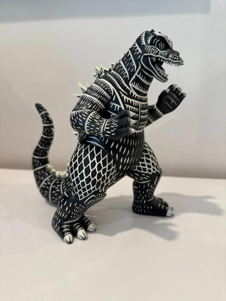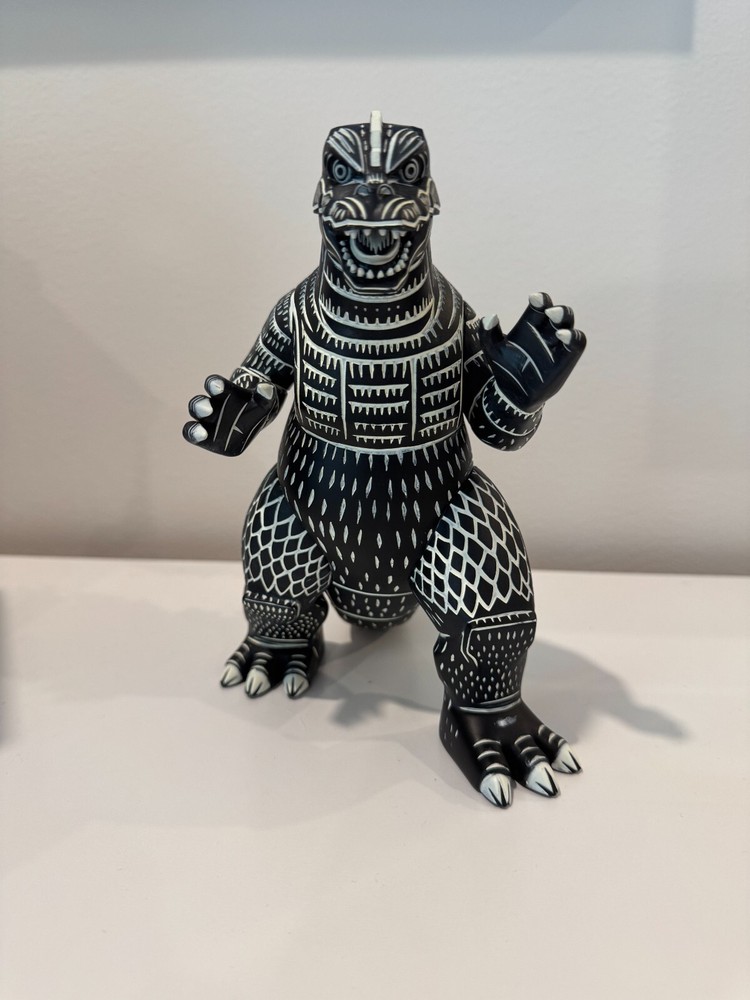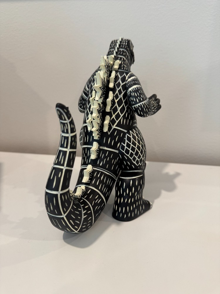 The product is a limited edition 2021 Mondo artist series statue of Godzilla from the Attack Peter series. This highly detailed vinyl figure is inspired by the iconic monster from the Godzilla franchise. Created in collaboration with Toho, this collectible piece is perfect for fans of Godzilla and monster enthusiasts alike. Made in China and recommended for ages 14 and up, this statue showcases the striking design and craftsmanship that Mondo is known for. Does not have box or stand.