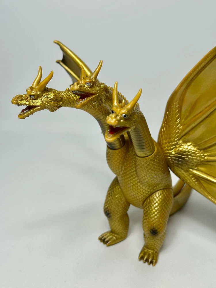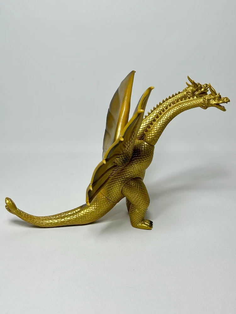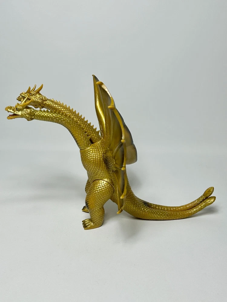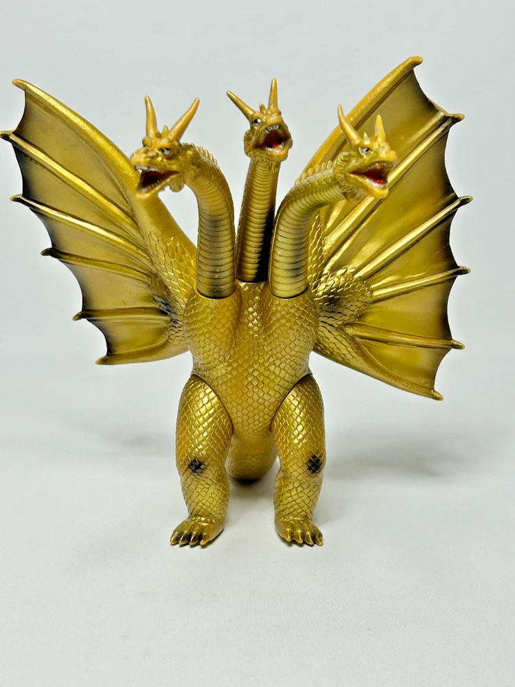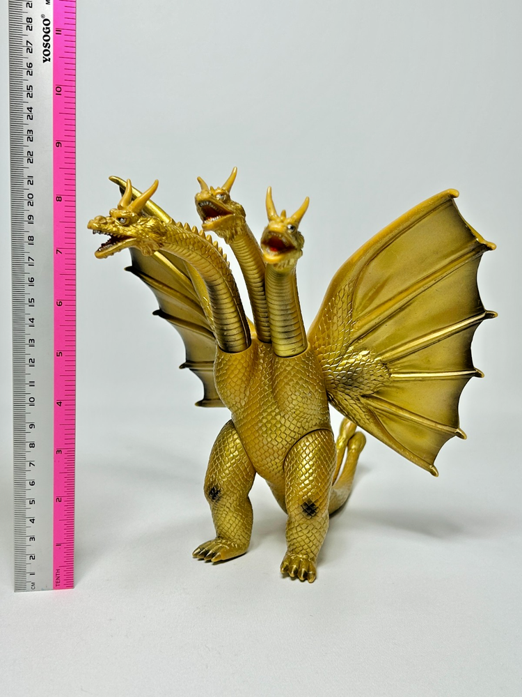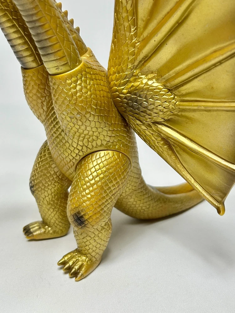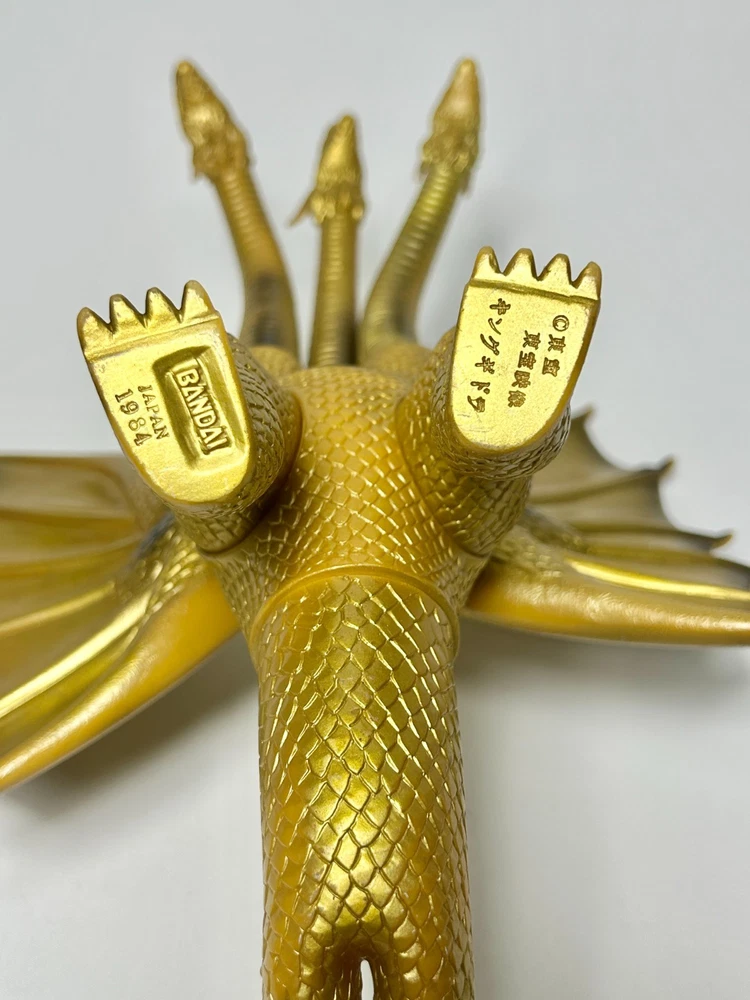 Description About This Item BANDAI 1984 King Ghidorah 8" Sofubi Vinyl Figure Early Gold Version Godzilla This is the very first King Ghidorah sofubi figure released by BANDAI in 1984. Finished in a striking metallic gold, this vintage figure captures the grandeur of Godzilla’s iconic three-headed rival. Crafted in soft vinyl, it features detailed sculpting of Ghidorah’s wings, twin tails, and menacing heads. As the earliest BANDAI version of King Ghidorah, it holds special significance for kaiju collectors and fans of the Showa and early Heisei eras. Size H 22cm (8") W 23.5cm (9") Measured from head to tail: 34cm (13") Shipping We offer two shipping options for your convenience. All shipments are sent with a tracking number. Economy Shipping (Japan Post): Delivery Time: 2-4 weeks. Includes tracking. Expedited Shipping (FedEx or EMS): Delivery Time: 3-7 business days to most countries. Includes tracking and insurance. Important Note: The actual delivery date may be later than the estimated delivery date provided by eBay. We ship from Monday to Friday, as our shipping partners are closed on weekends. Import Duties and Taxes Important Note for U.S. Buyers: Please be aware that import duties, taxes, and other charges are not included in the item price or shipping cost. These fees are the buyer's responsibility . Recent changes in U.S. customs regulations have made it more likely for these fees to be applied to all shipments, regardless of value. We highly recommend contacting your local customs office for specific details before making a purchase. For All Other International Buyers: Please be aware that import duties, taxes, and other charges are not included in the item price or shipping cost. These fees are the buyer's responsibility . We highly recommend contacting your local customs office for specific details before making a purchase. Customs Declaration: We are unable to mark items as "gifts" or declare a lower value than the actual price, as this is an illegal act. Other Information If you have any questions or are looking for a specific item, please feel free to contact us anytime! Thank you for your interest.