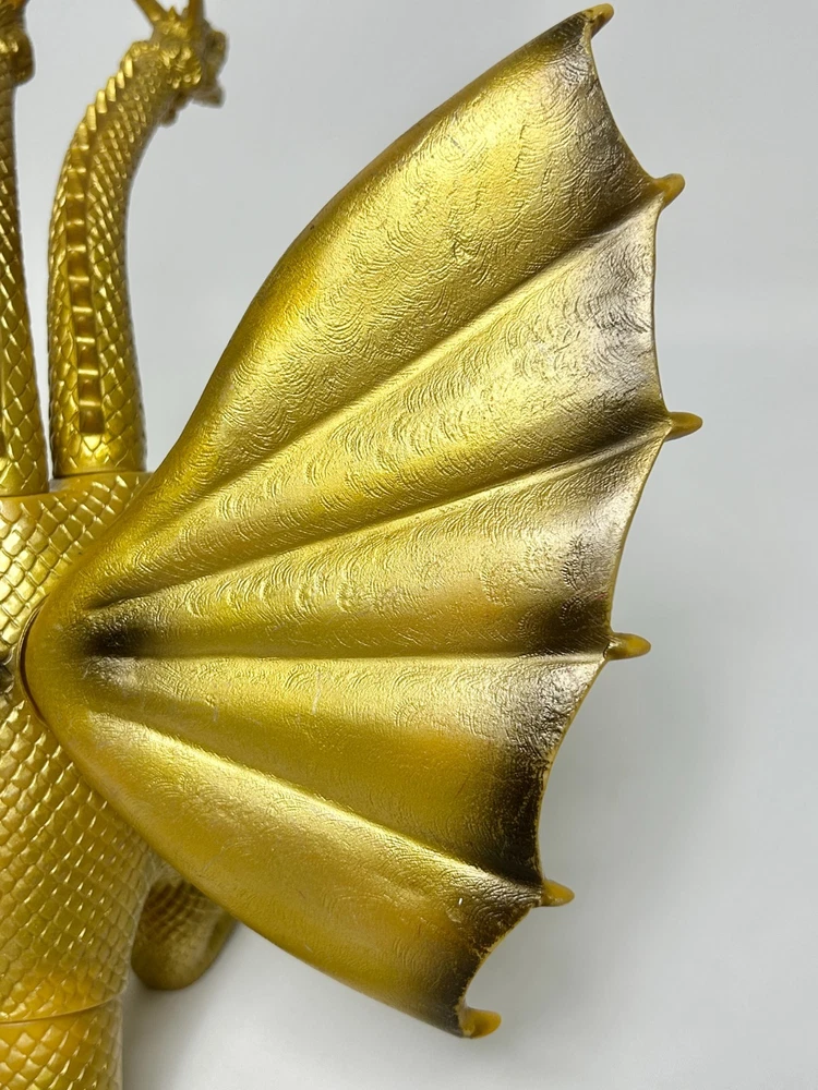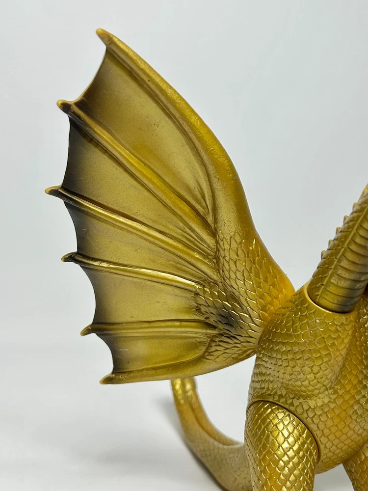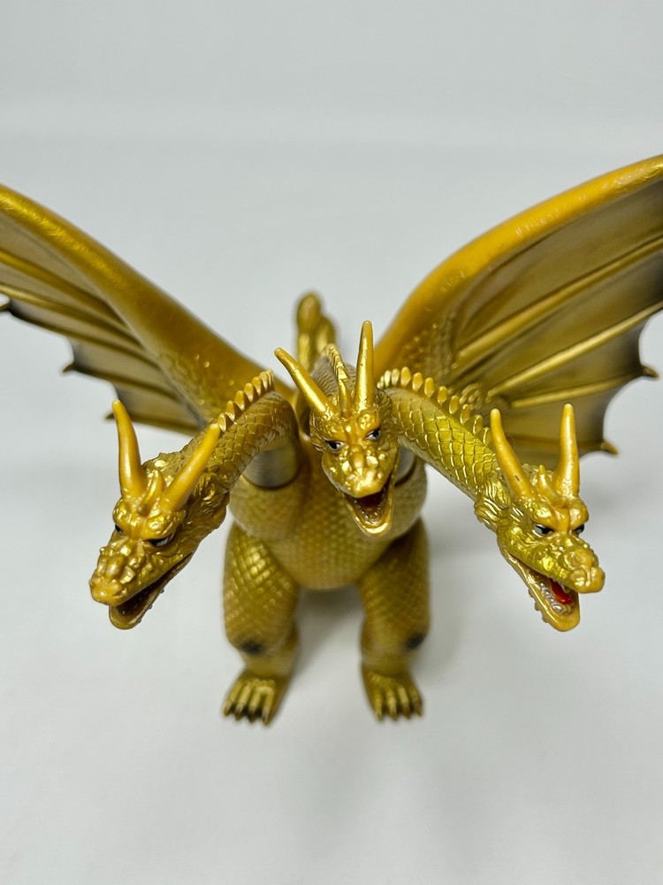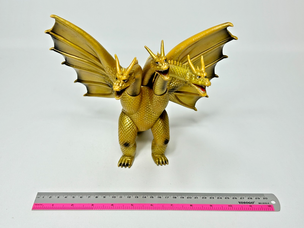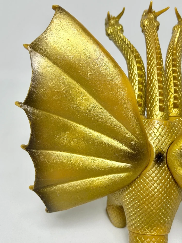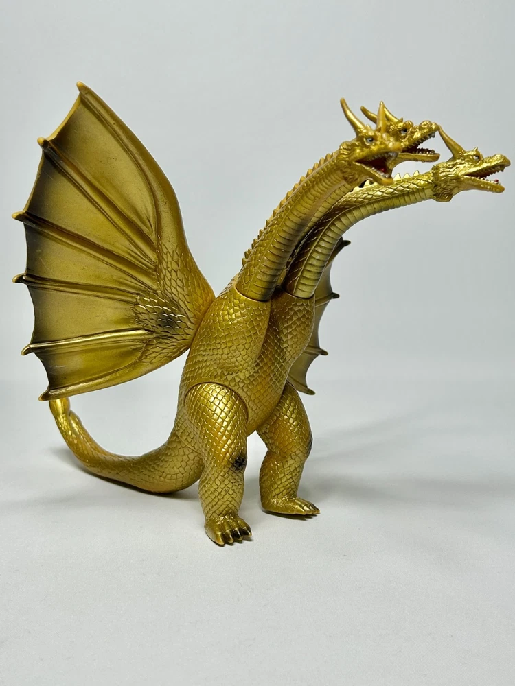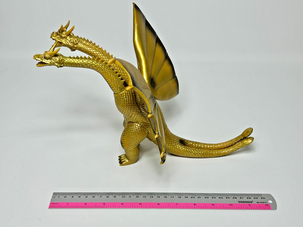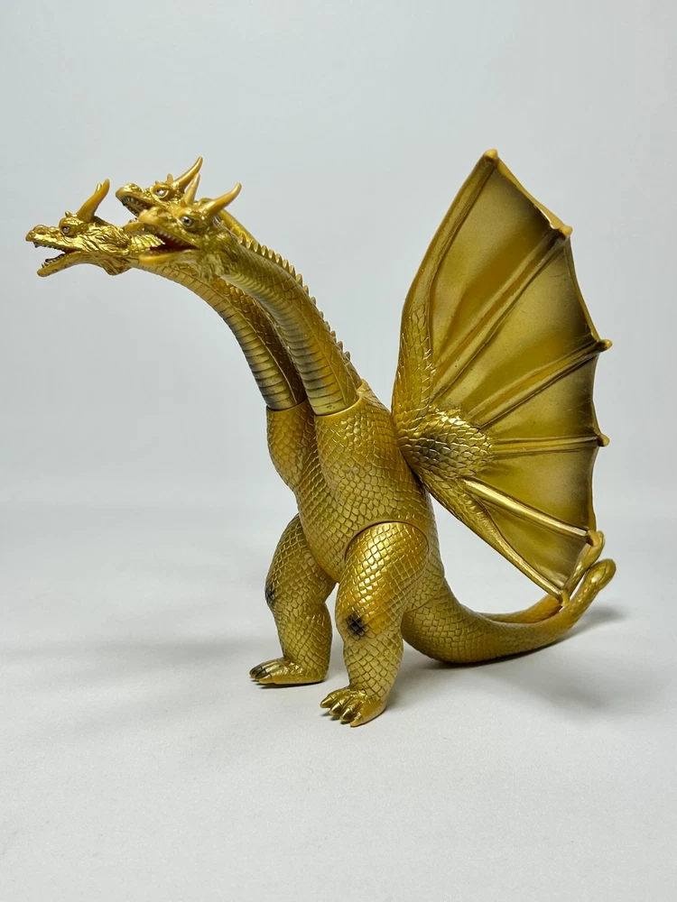 Description About This Item BANDAI 1984 King Ghidorah 8" Sofubi Vinyl Figure Early Gold Version Godzilla This is the very first King Ghidorah sofubi figure released by BANDAI in 1984. Finished in a striking metallic gold, this vintage figure captures the grandeur of Godzilla’s iconic three-headed rival. Crafted in soft vinyl, it features detailed sculpting of Ghidorah’s wings, twin tails, and menacing heads. As the earliest BANDAI version of King Ghidorah, it holds special significance for kaiju collectors and fans of the Showa and early Heisei eras. Size H 22cm (8") W 23.5cm (9") Measured from head to tail: 34cm (13") Shipping We offer two shipping options for your convenience. All shipments are sent with a tracking number. Economy Shipping (Japan Post): Delivery Time: 2-4 weeks. Includes tracking. Expedited Shipping (FedEx or EMS): Delivery Time: 3-7 business days to most countries. Includes tracking and insurance. Important Note: The actual delivery date may be later than the estimated delivery date provided by eBay. We ship from Monday to Friday, as our shipping partners are closed on weekends. Import Duties and Taxes Important Note for U.S. Buyers: Please be aware that import duties, taxes, and other charges are not included in the item price or shipping cost. These fees are the buyer's responsibility . Recent changes in U.S. customs regulations have made it more likely for these fees to be applied to all shipments, regardless of value. We highly recommend contacting your local customs office for specific details before making a purchase. For All Other International Buyers: Please be aware that import duties, taxes, and other charges are not included in the item price or shipping cost. These fees are the buyer's responsibility . We highly recommend contacting your local customs office for specific details before making a purchase. Customs Declaration: We are unable to mark items as "gifts" or declare a lower value than the actual price, as this is an illegal act. Other Information If you have any questions or are looking for a specific item, please feel free to contact us anytime! Thank you for your interest.