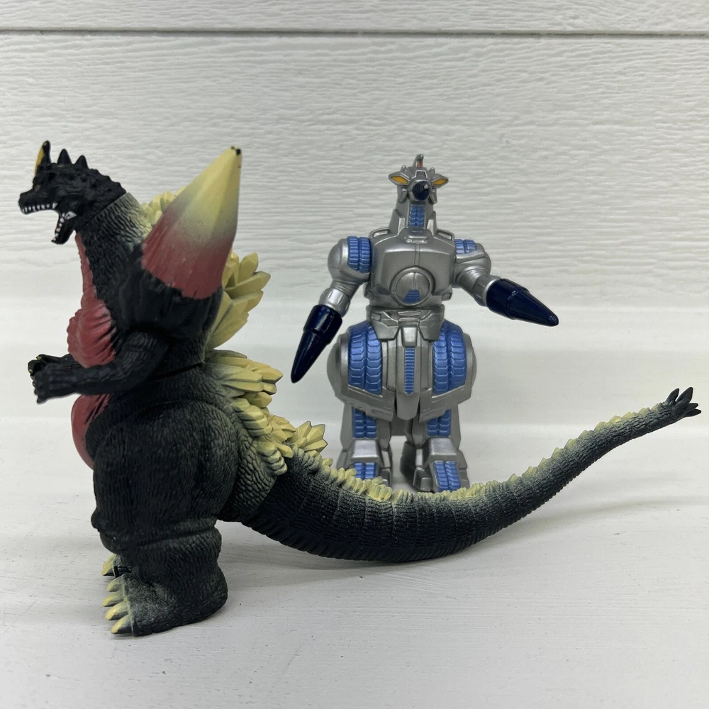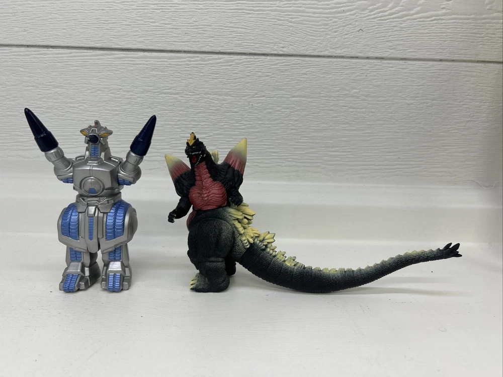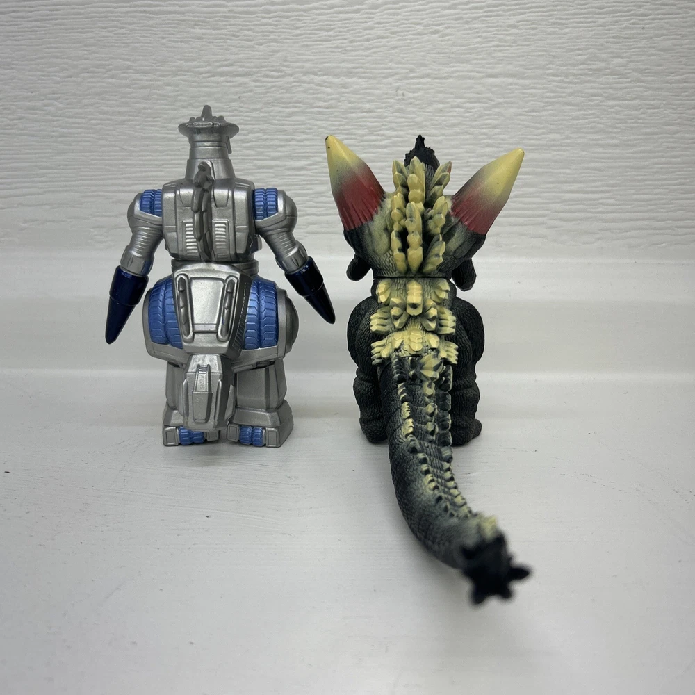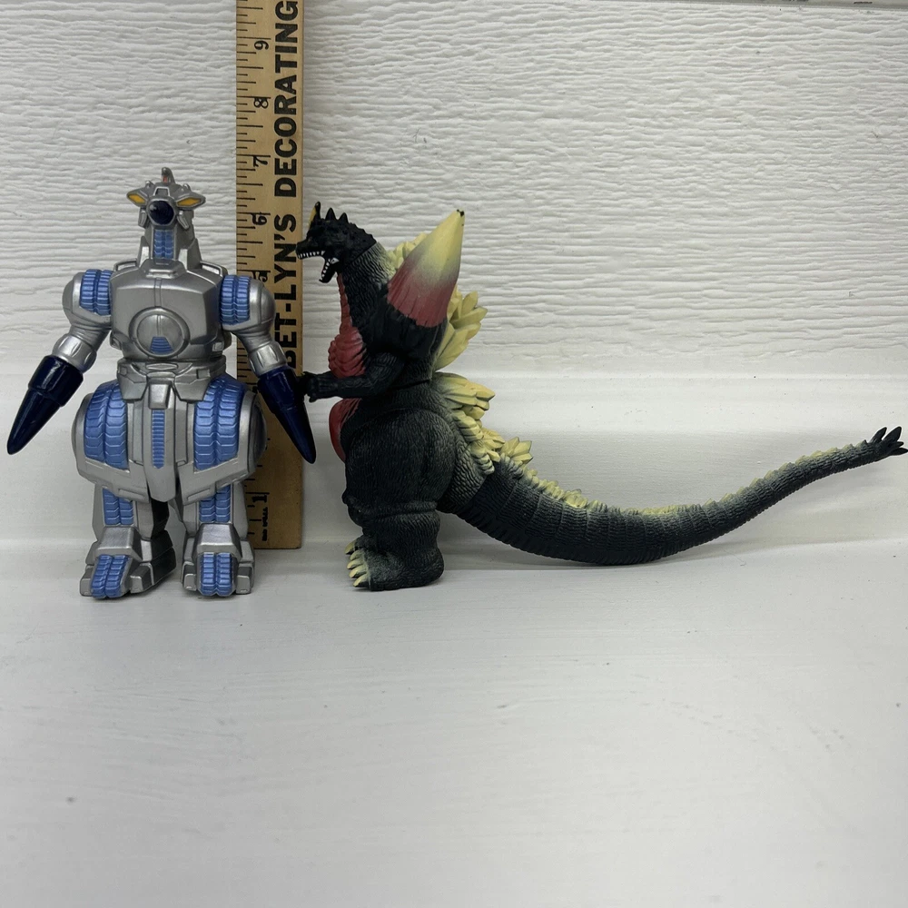 Check pictures for detailed condition. This Bandai Space Godzilla & Moguera soft vinyl 6" figure is a must-have for any Godzilla fan! Released in 1993, this collectible features two iconic monsters from the Godzilla franchise. The posable figures are made from high-quality vinyl and stand at 6 inches tall. With intricate details and vibrant colors, these figures are perfect for display or play. Whether you're a collector or just a fan of the franchise, these figures are a great addition to any collection. Don't miss out on the chance to own this rare piece of Godzilla history.