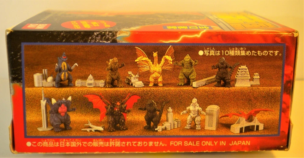 (Photos 1, 5, 6, and 7 are stock photos used in a previous listing. This box is in the same general condition as shown in the photos.) BANDAI 1999 - GODZILLA KINGDOM 1- GODZILLA 1962 FIGURE - APPROXIMATELY 1.5" TALL WITH TSUGARU EXPRESS TRAIN - NEW The box for Godzilla 62 has been opened from the bottom and the pack of hard candies removed. Every figure from this Godzilla Kingdom 1 set ranges in height, length, and or width, but generally speaking the figures are approximately 1.5" tall. Every figure and the accompanying "bonus piece" are new and each figure comes in an unopened plastic sleeve. Each box is numbered, and the number of the box can be seen on the lower, right-side box tab. A rare, vintage Goji collectible that is difficult to find and buy in this condition. All my inventory-stock is authorized and licensed by various companies here in the U.S.A., Japan, or abroad. They have been maintained in the very best condition possible over the years or decades. I urge you to bid or buy this now from me while it is available for sale! Please take a moment to read this before you place a bid or make a purchase from me. I use as much time as needed to check, double-check and triple-check every listing that I place on eBay, however, I do make mistakes in my listings now and then. I do, and when brought to my attention, will always correct any mistake in my listing. I would ask you to please be familiar with or know about the item that you will place a bid on or purchase from me. If you need additional information, or if you have any concerns or questions about the listing, please contact me before you place any bid or before you purchase the item from me. If this is a gift for someone, please know that if this is not the item they would like to receive, I offer no exchanges or returns, all sales are final. If a bid was won or if a purchase was made, the completion of the payment is expected. It is out of my control and not my responsibility if a most beloved family pet inadvertently placed a bid or made a purchase accidentally or not on a computer or smartphone without the eBay account holder knowing. The transaction will not be canceled by me! Regarding my shipping charges, when I do charge, charges from me are the actual shipping charges. Whatever carrier I choose, shipping charges are determined by the size of the shipping box and the weight. I try my best to use an overabundance of packaging material to protect the item during transit, which affects the weight. All my shipping charges are subject to eBay's "Final Value fee" and the fee has to be taken into account with my shipping charge. When I do charge for shipping, many times I do not charge enough to cover all the shipping costs. In the rare cases that I have overcharged in my shipping cost, I have refunded the overcharge amount to my customers through PayPal. My customers throughout the many years of selling on eBay where I have overcharged in error on my shipping costs can attest to the above statement. Please take a moment to learn something about me, I am an eBay seller who tries his very best to offer all my customers the very best-best conditioned collectibles that the world has to offer along with the very best customer service that I can provide. I want every customer of mine to know that I am not your "average seller on eBay," I operate a very small and personalized "pop operation" that caters to his customers. It has blessed me and brought me great joy to have so many grandmothers, mothers, and dads buy from me for their loved ones. Sometimes, I do not have the lowest price for a collectible item.