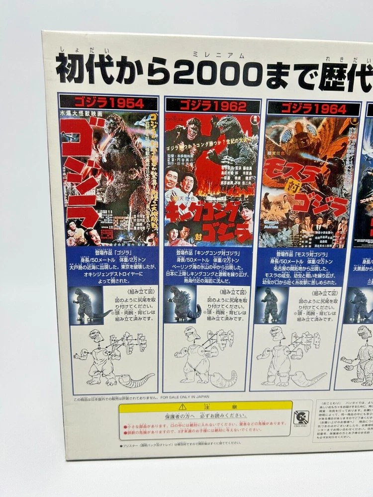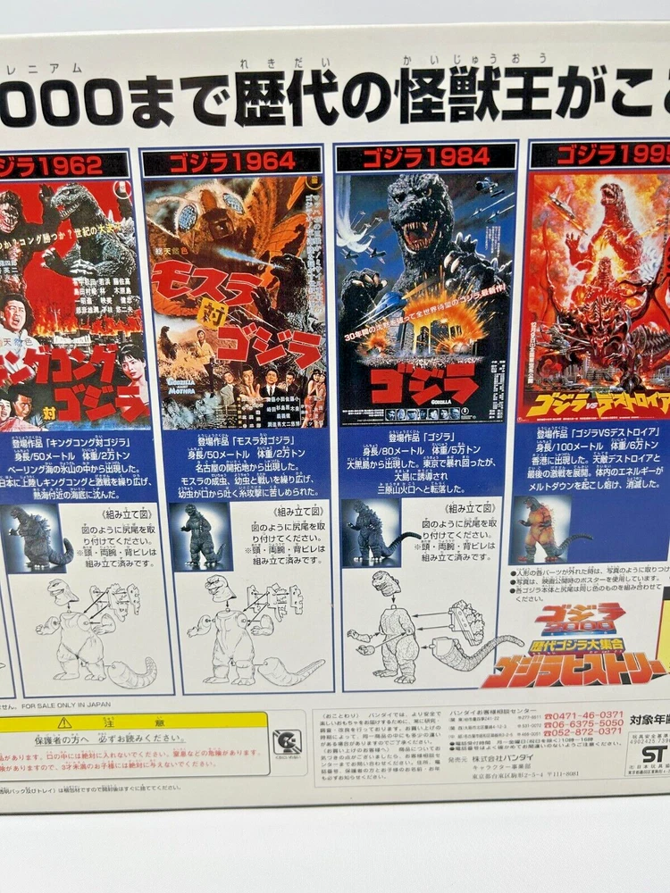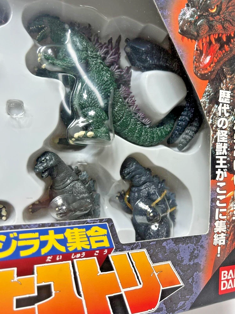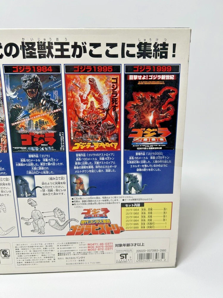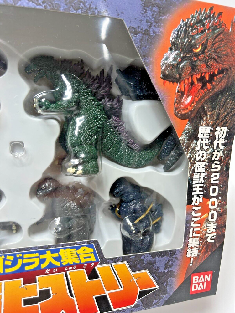 Description About This Items BANDAI 1999 Godzilla Collection Godzilla History Figure It includes all the monster kings from the first to 2000. Set contents: Godzilla 1954 Godzilla 1962 Godzilla 1964 Godzilla 1984 Godzilla 1995 Godzilla 1999 Condition The item is unopened and in very good condition. Included Items None Shipping We will ship your order via FedEx, DHL or Japan Post. The item will be shipped in a box with packaging material. Please check the expected arrival date for the shipping method you selected! However, delivery may take longer depending on the shipping situation in your country and the situation of the post office. Please note that it may take longer to deliver than the "expected delivery date". We will always ship your item with a tracking number, so you can order without worrying about delivery. You can track your delivery status at any time. Shipping is available from Monday to Friday. It is not available on Saturdays and Sundays because the shipping company is closed. If we do not hear from you after 3 days, your order will be canceled or a case will be filed. About Importer's Obligation Import duties, taxes and charges are not included in the item price or shipping cost. These charges are the buyer's responsibility. Please check with your countrys office to determine what these additional costs will be prior to bidding or buying. We cant reply gifts or unreasonable requests such as declared amount. If have any questions, anytime contact me! and if you look for any item, please feel free to contact us. Thank you for Watching.