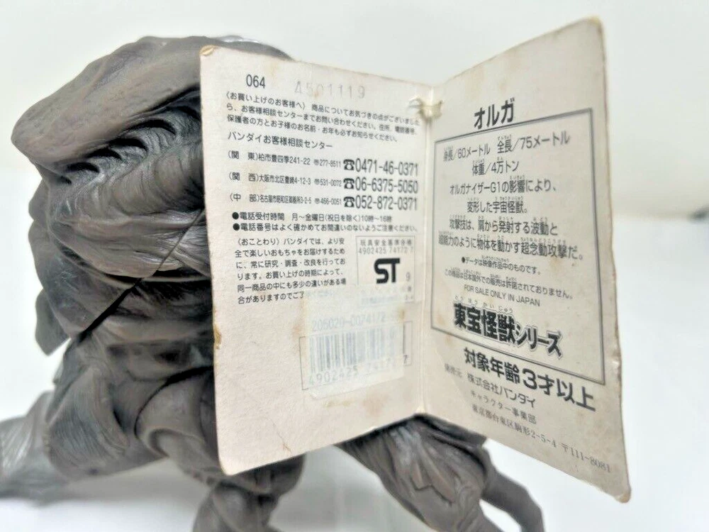 Description About This Items BANDAI 1999 Orga 6" Soft Vinyl Figure Godzilla 2000 Millennium with Tag Size H 17cm (6") D 28cm (11") Condition The tag has some scratches and dirt, but the figure is in very good condition. Included Items None Shipping We will ship your order via FedEx, DHL or Japan Post. The item will be shipped in a box with packaging material. Please check the expected arrival date for the shipping method you selected! However, delivery may take longer depending on the shipping situation in your country and the situation of the post office. Please note that it may take longer to deliver than the "expected delivery date". We will always ship your item with a tracking number, so you can order without worrying about delivery. You can track your delivery status at any time. Shipping is available from Monday to Friday. It is not available on Saturdays and Sundays because the shipping company is closed. If we do not hear from you after 3 days, your order will be canceled or a case will be filed. About Importer's Obligation Import duties, taxes and charges are not included in the item price or shipping cost. These charges are the buyer's responsibility. Please check with your countrys office to determine what these additional costs will be prior to bidding or buying. We cant reply gifts or unreasonable requests such as declared amount. If have any questions, anytime contact me! and if you look for any item, please feel free to contact us. Thank you for Watching.