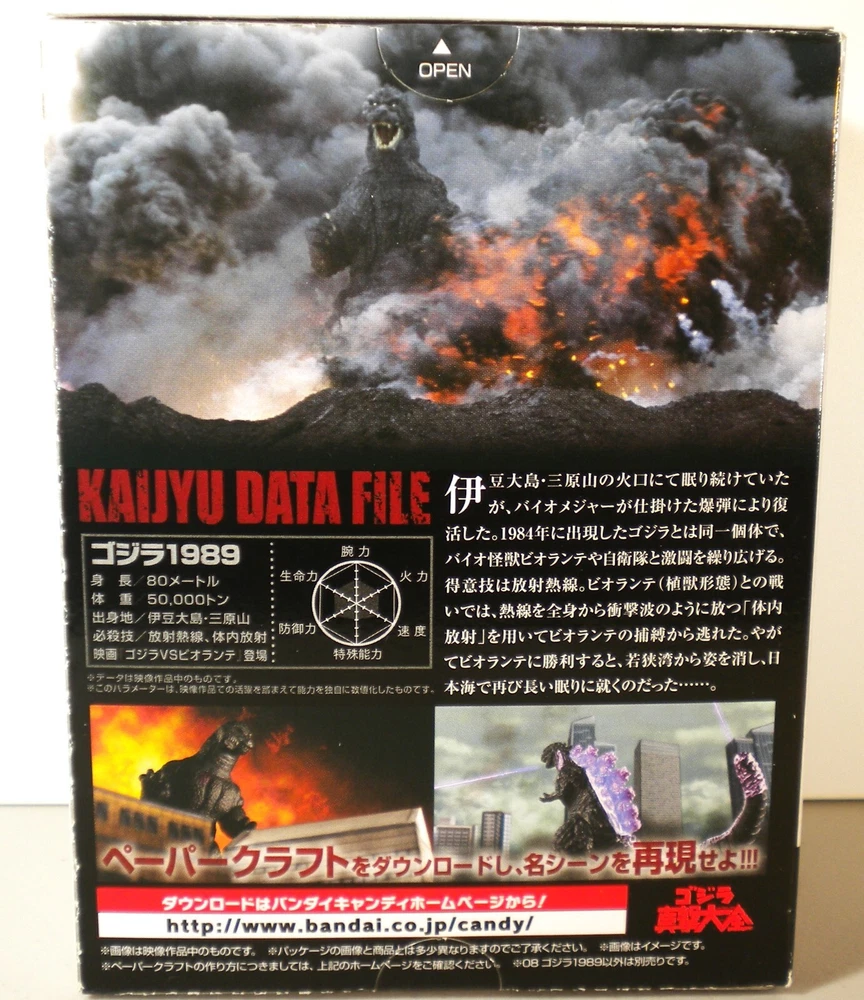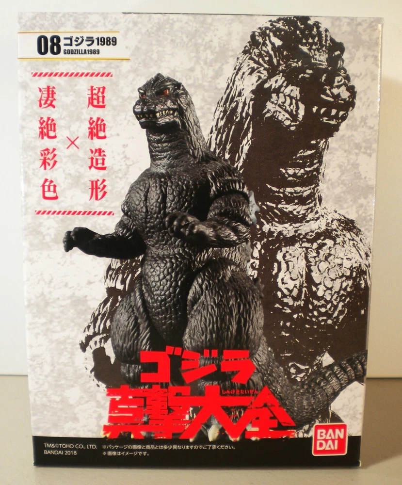 BANDAI 2018 - GODZILLA SHINGEKI TAIZEN - BOX 08 GODZILLA 1989 (GODZILLA VS. BIOLLANTE) VER. - APPROXIMATELY 4" TALL - NEW - UNOPENED BOX The Godzilla 1989 figure is new, in mint condition as Bandai produced it, and comes in a box that is unopened and in very good condition (see photos). The figure comes with a candy which I would advise should not be consumed. The figure is about six years old. It is a Bandai large candy toy collectible that is hard to buy in the same condition as the one listed here. All my inventory stock of art-vinyl-art is authorized and licensed by the various companies here in the U.S.A. and Japan. They have been maintained in the very best condition possible over the years and or decades. Please bid or buy this now from me while it is available for sale! Please take a moment to read this before you place a bid or make a purchase from me. I use as much time as needed to check, double-check, and triple-check every listing that I place on eBay, however, I do make mistakes in my listings now and then. I do, and when brought to my attention, will always correct any mistake in my listing. I would ask you to please be familiar with or know about the item that you will place a bid on or purchase from me. If you need additional information, or if you have any concerns or questions about the listing, please contact me before you place any bid or before you purchase the item from me. If this is a gift for someone, please know that if this is not the item they would like to receive, I offer no exchanges or returns, all sales are final. If a bid was won or if a purchase was made, the completion of the payment is expected. It is out of my control and not my responsibility if a most beloved family pet inadvertently placed a bid or made a purchase accidentally or not on a computer or smartphone without the eBay account holder knowing. The transaction will not be canceled by me! Regarding my shipping charges, when I do charge, charges from me are the actual shipping charges. Whatever carrier I choose, shipping charges are determined by the size of the shipping box and the weight. I try my best to use an overabundance of packaging material to protect the item during transit, which affects the weight. All my shipping charges are subject to eBay's "Final Value fee" and the fee has to be taken into account with my shipping charge. When I do charge for shipping, many times I do not charge enough to cover all the shipping costs. In the rare cases that I have overcharged in my shipping cost, I have refunded the overcharge amount to my customers through PayPal. My customers throughout the many years of selling on eBay where I have overcharged in error on my shipping costs can attest to the above statement. Please take a moment to learn something about me, I am an eBay seller who tries his very best to offer all my customers the very best, best-conditioned collectibles that the world has to offer along with the very best customer service that I can provide. I want every customer of mine to know that I am not your "average seller on eBay," I operate a very small and personalized "pop operation" that caters to his customers. It has blessed me and brought me great joy to have so many grandmothers, mothers, and dads buy from me for their loved ones. Sometimes, I do not have the lowest price for a collectible item on eBay (sometimes I do) , but many of my customers who know this and still purchase from me will share with you that "the overall purchasing experience was well worth the price." I invite and welcome everyone to be a customer of mine. Having honesty and integrity with every customer of mine are not just empty words, they are a practice for me that has been confirmed with the various feedback that has been left for me over the many years of selling on eBay!