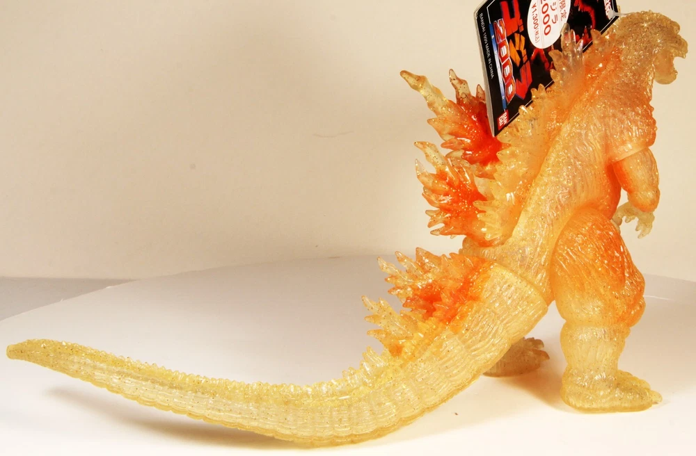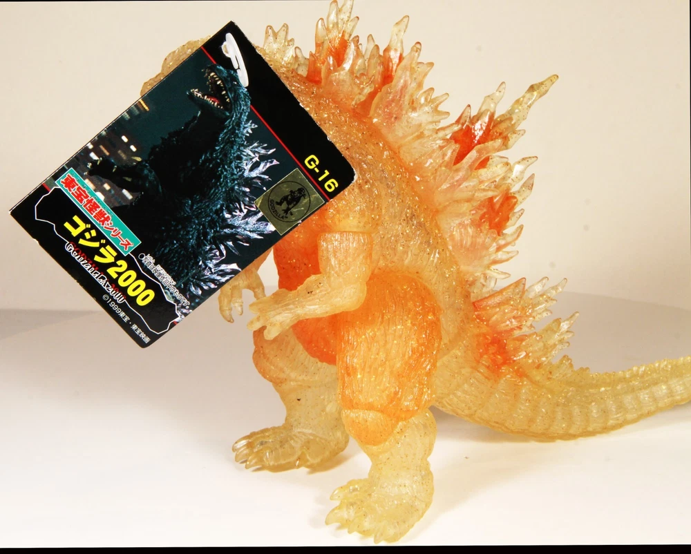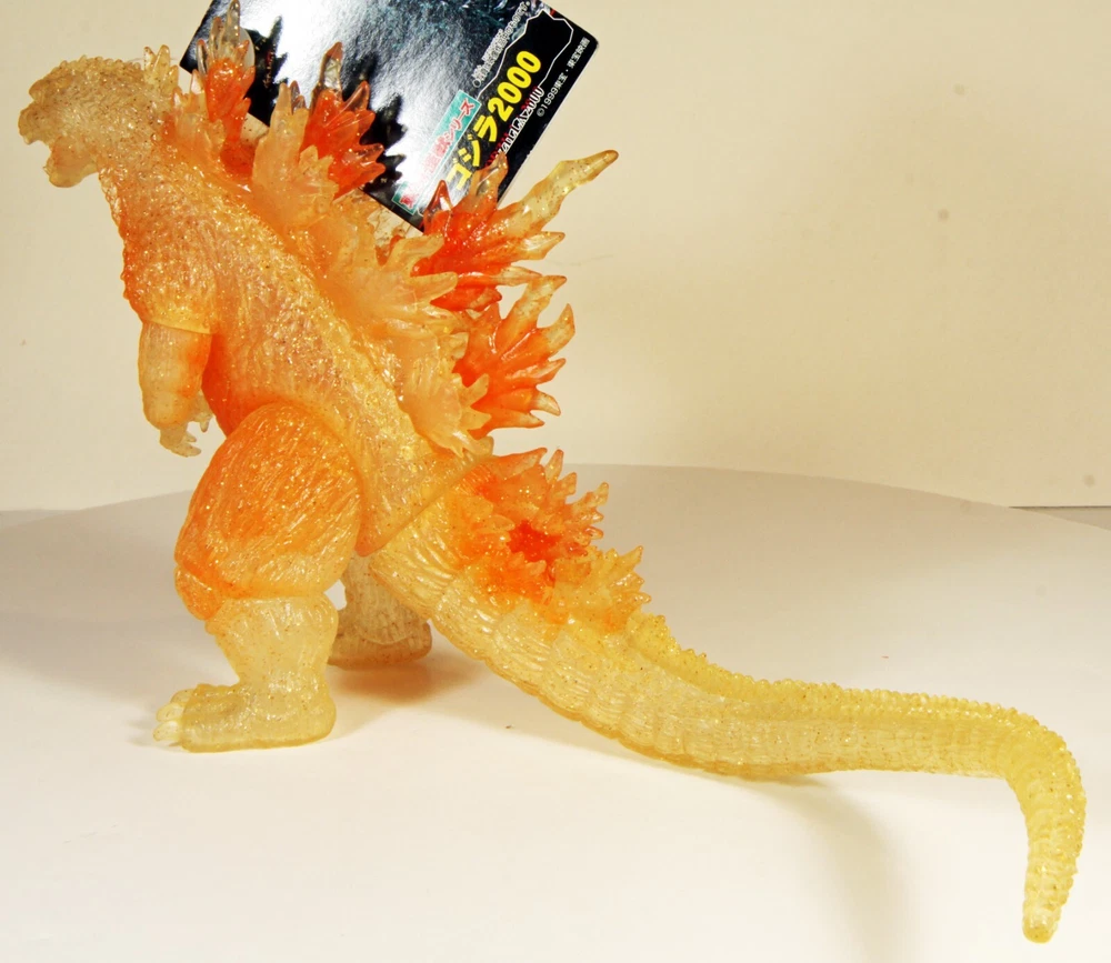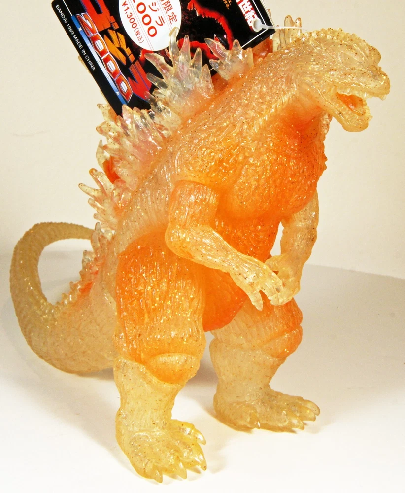 VINTAGE BANDAI GODZILLA 2000 w/ ORANGE GLITTER G2K THEATER EXCLUSIVE , new with hang tag made in Japan, 7" high. Hang tag has some edges and corners wear, still attached. Please review all images for ...