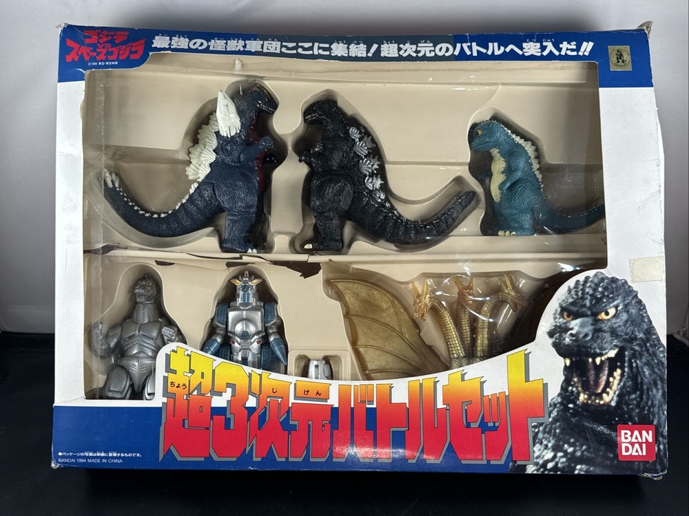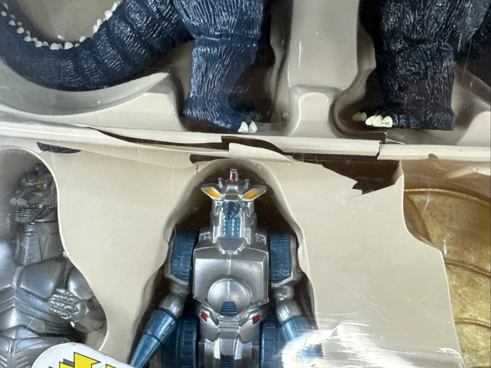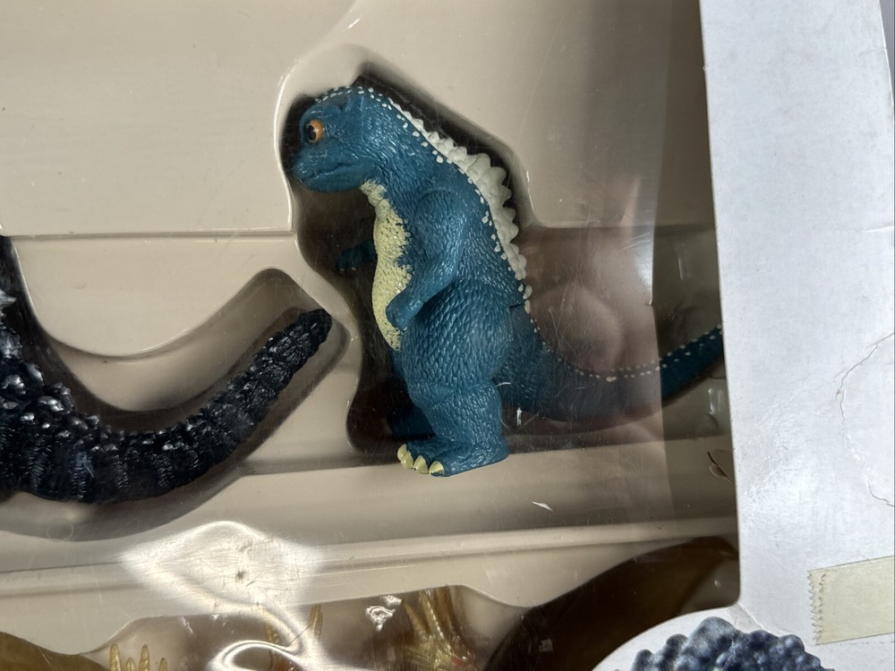 BANDAI GODZILLA vs. SPACEGODZILLA 4” Mini Candy toys WITH BOX! Box has lots of wear. The interior plastic has some cracking.