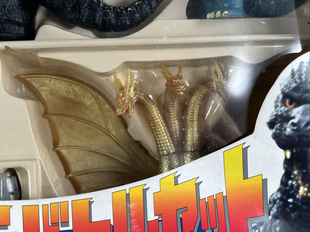 BANDAI GODZILLA vs. SPACEGODZILLA 4” Mini Candy toys WITH BOX! Box has lots of wear. The interior plastic has some cracking....