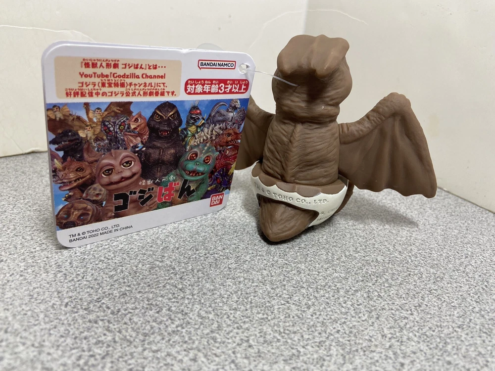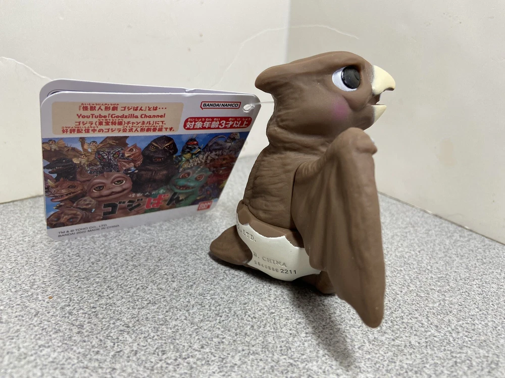 Bandai produced this Radon (known as Rodan in the US) vinyl figure in 2022, under license based on the Toho web series featuring puppet versions of the classic Godzilla characters. Figure measures about 5" across and 3" tall, depicting Radon with his permanently attached eggshell and baby teeth. Very cute figure that honors the original kaiju design. Figure is BRAND NEW with tag attached and no price stickers or store handling wear, comes in open-ended poly bag as shipped by the manufacturer.