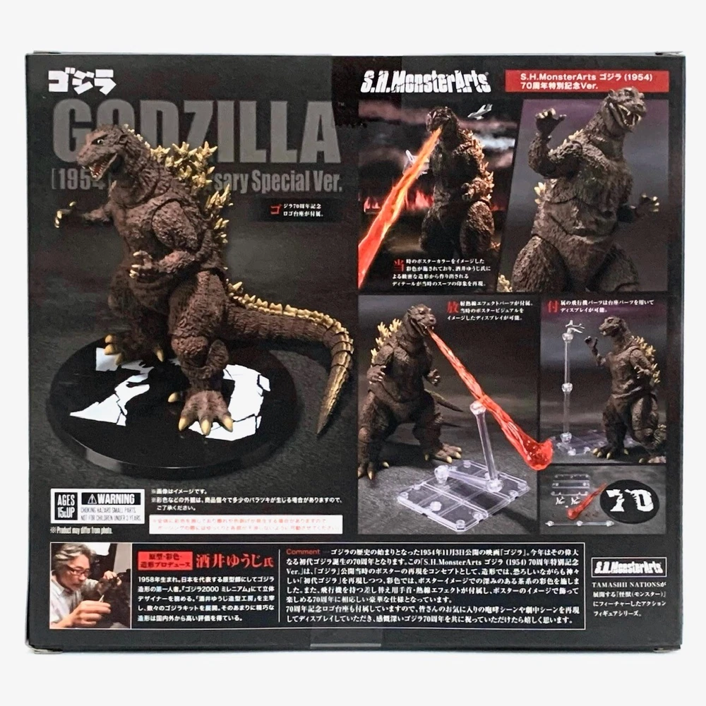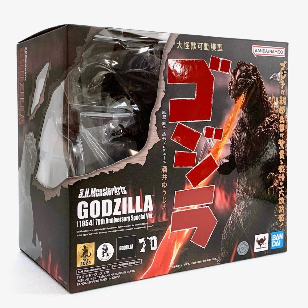 BANDAI SPIRITS S.H.MonsterArts Godzilla 1954 70th Anniversary Special Ver. Japan Description About Item BANDAI SPIRITS S.H.MonsterArts Godzilla 1954 ”70th Anniversary Special Ver.” Modeling and coloring produced by Yuji Sakai Come with wrist parts, atomic breath effect parts, airplane parts and figure stand All my products are 100% Authentics . Release on November 16 , 2024 Condition Brand New Size Hight: 150㎜/5.9in Main Material PVC、ABS Shipping form Japan Expedited shipping by FedEx: 4-10 days Please note for International buyers Import duties, taxes, and charges are not included in the item price or shipping cost. These charges are the buyer's responsibility. Please check with your country's customs office to determine what these additional costs will be prior to bidding or buying. Thank you for your understanding.