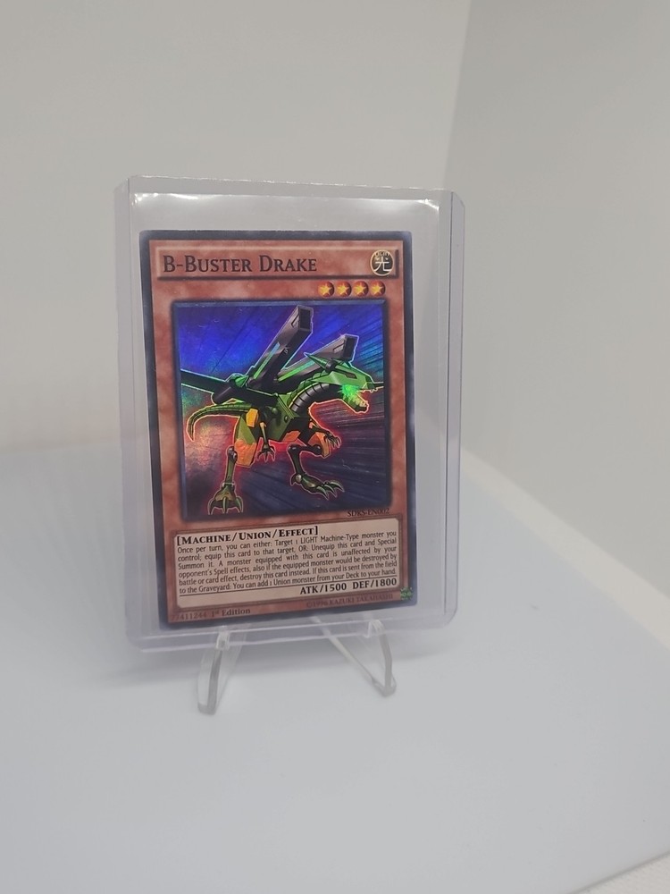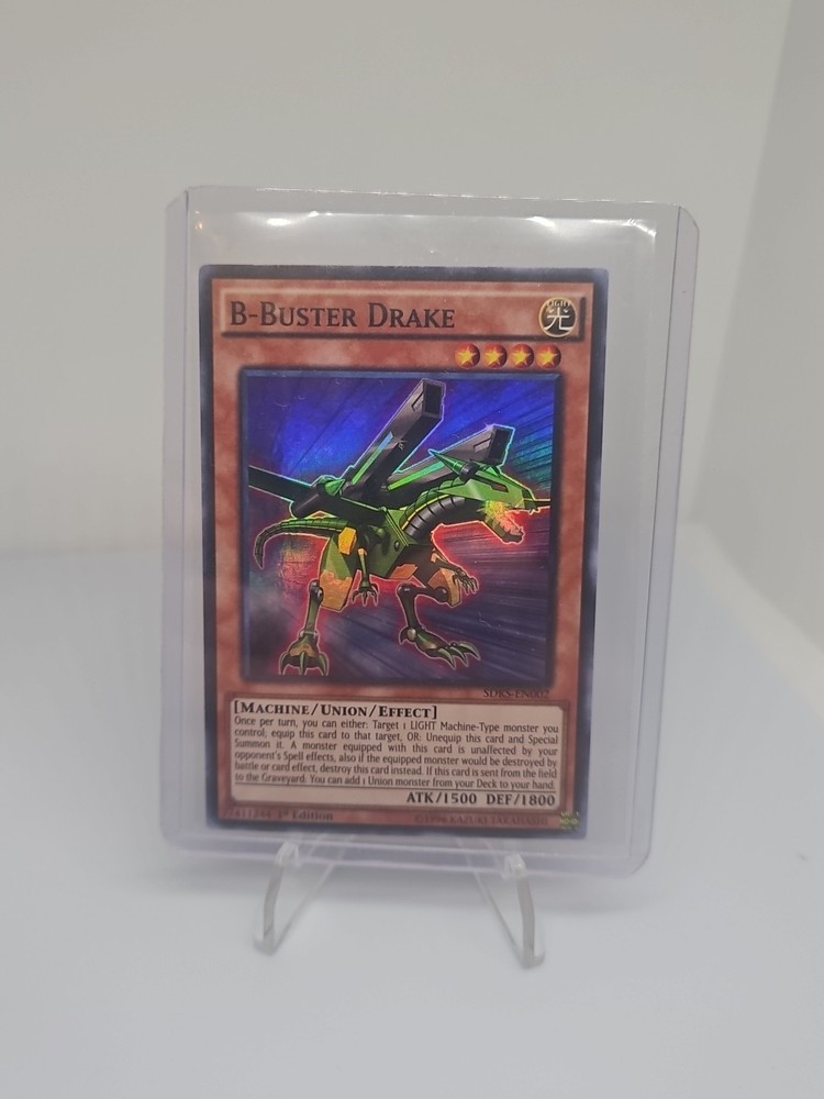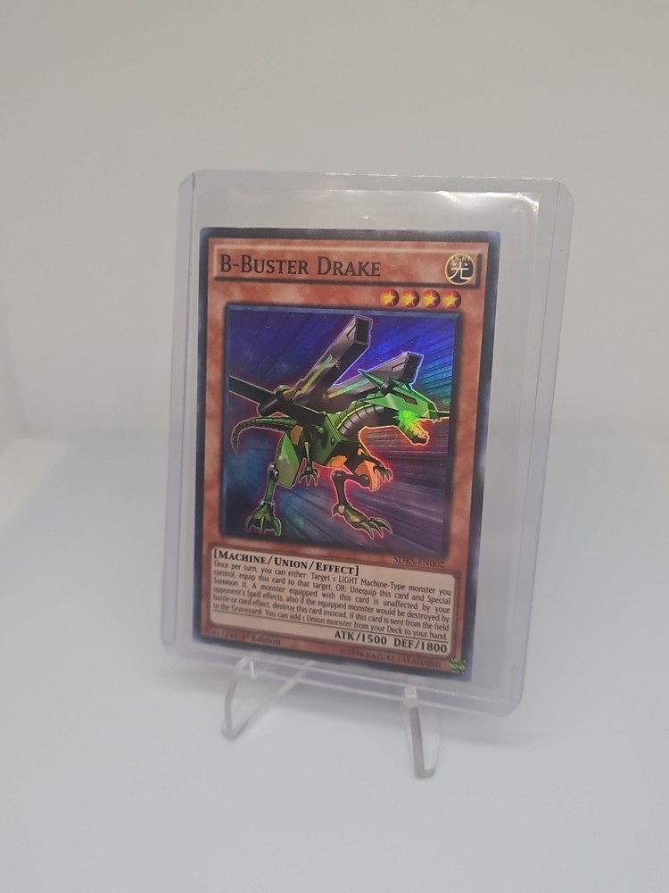 Elevate your Yu-Gi-Oh! TCG collection with the formidable B-Buster Drake from the Structure Deck: Seto Kaiba-1st Edition. As a Super Rare, 1st Edition Union monster, B-Buster Drake SDKS-EN002 boasts an impressive 1500 attack power and 1800 defense, ready to contribute to your deck's strategic advantage. With its unique abilities, this Effect monster can either equip or unequip itself, providing versatility in gameplay. The holo finish enhances its visual appeal, making it a standout addition to any display or competitive lineup. Crafted by Konami and presented in English, B-Buster Drake is a must-have for players and collectors alike.