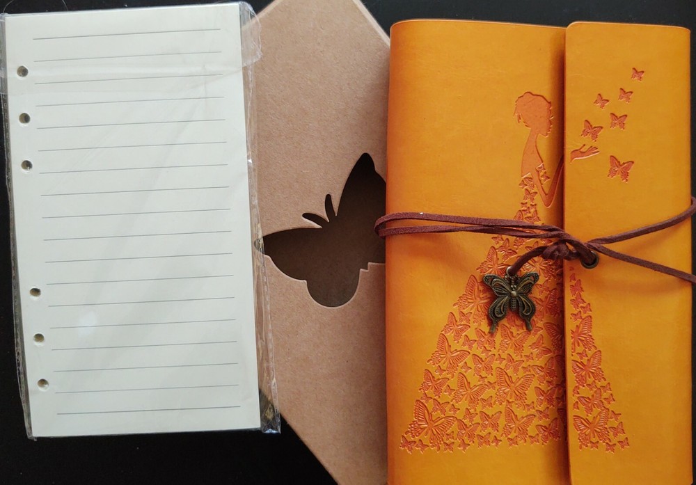 BEAUTIFUL BUTTERFLY Golden Sunflower Yellow Vintage Spiral Bound Notebook Journal With Refill Pack NEW!.