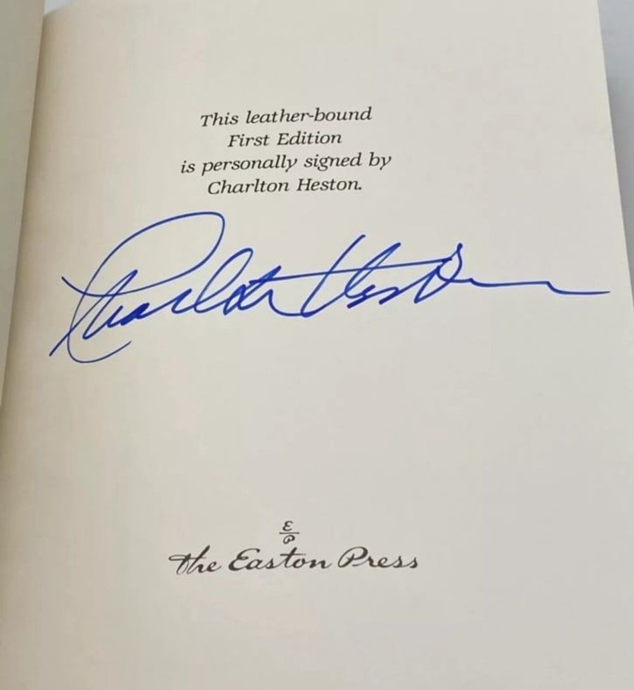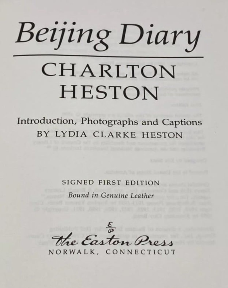 This first edition is beautifully bound in fine leather with 22kt gold accents, making it a standout addition to any library. Dive into the pages of Heston’s intimate account of his experiences in Beijing during the filming of "The Last Emperor." This diary not only chronicles his personal reflections but also offers a behind-the-scenes look at the cultural and political atmosphere of China in the 1980s. **Photos of the signed autographed interior of the book are from stock photos for your reference..** Perfect for collectors of rare books, Hollywood memorabilia, or fans of Charlton Heston, this book promises to be a conversation piece and a treasure in any collection. This rare, collectible edition will enhance any personal library or make an unforgettable gift for literature and Hollywood fans.! Note: new, however the clear wrapping was torn on one corner & never been opened. Photos of the interior are from stock photos for your reference..