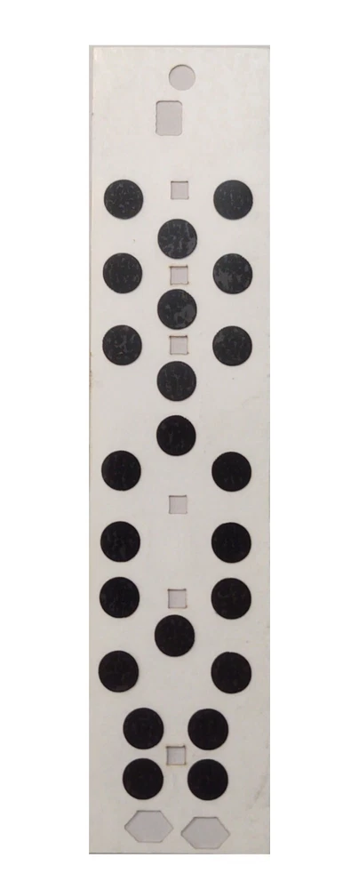 CAUTION I see a lot of these for repair. It is common for them to have corrosion from battery leaks. A button repair membrane is not going to repair broken circuit boards. If your battery contacts and/or area under the batteries is all rusty or corroded then the remote will definitely need repair service. Also, this remote has no screws or housing clips. The casing needs to be broken open (which is not very difficult) and some method needs to be implemented to hold the remote together after repair. You can use tape or E6000 type glue. DO NOT USE SUPERGLUE! You will regret it. Ask me for advice if you are not sure what to do KSMBR20543T Remote Control Membrane Keypad Repair Pad Do-It-Yourself Permanent Repair No paint ink or glue Will not chip or flake off Tested over 1 Million button presses! Blocks dirt and oils forever Permanently repairs rubber keypad buttons by replacing the conductive material. Your buttons fails when the conductive pad wears out and silicone oils seep from the keypad. This gooey paste blocks electrical conductivity and stops the switch from working. The ButtonWorx membrane keypad blocks dirt and oil from reaching the circuit board and offers a new conductor that cannot break down like rubber conductors do. Note: This is for repairing hard to press buttons. If all your buttons stopped working one day, then the remote is broken (not the buttons) and needs repair Our membrane keypads are custom cut for each model. Installation IMPORTANT : CLEAN THE CIRCUIT BOARD WITH ISOPROPYL ALCOHOL Install the ButtonWorx™ repair membrane FLAT FLAT FLAT. There is no need to make sure it is stuck down. Do Not press down on the button areas. That can cause buttons to cave in creating a permanent short circuit. Just place it down using the holes for alignment. If it needs to be repositioned you can remove it and try again.