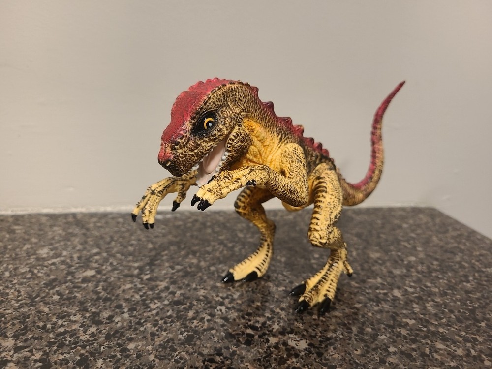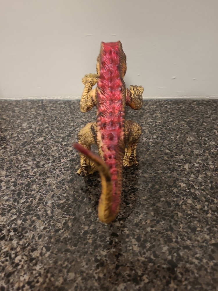This Red Baby Godzilla Figure is a classic collectible from Trendmasters and Toho, perfect for fans of the Godzilla franchise. The 6" toy features a Tyrannosaurus Rex dinosaur design and was released in 1998. It is a great addition to any toy collection, especially for those interested in robots, monsters, and space toys. This item is pre-owned and has been well-maintained for its age.