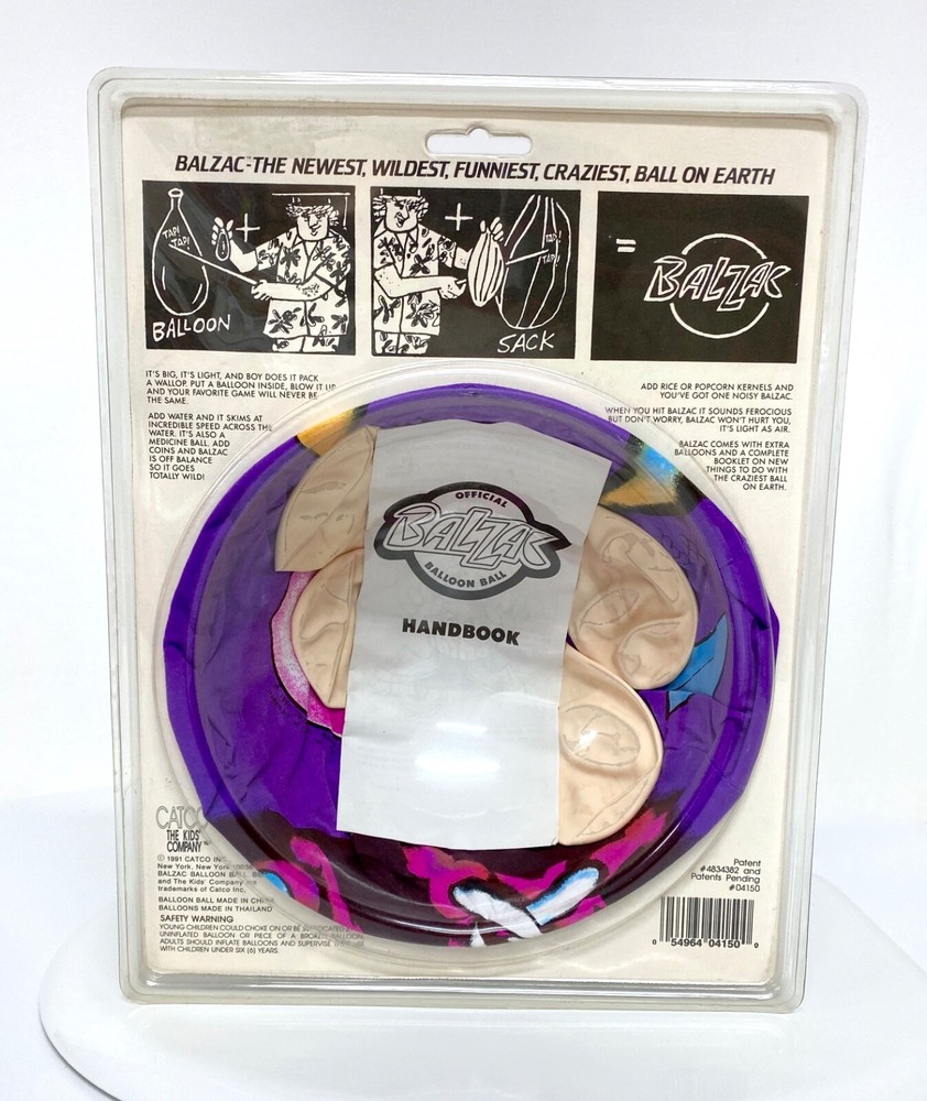 Click here for more Great BALZAC Listings~~~ Special Notes: Condition::::: Packaging is still factory sealed and the contents have never been usedThe package still displays nicely,, just showing some light age and storage wear About The Product:::::: Made by Milton Bradley in 1989 Balzac Balloon Ball was a kind of cloth sack into which you could put a deflated balloon. Once inside the sack you would inflate the balloon to make a Balzac Balloon Ball. Because the ball was so light you could play with it indoors, outdoors or even at the swimming pool. To make things more interesting you could put coins and water inside the Balzac Balloon Ball and the weight of the coins would make the Balzac Balloon Ball veer off to the side randomly when thrown making it really hard to catch. If you put a cup of water inside the Balzac Balloon Ball and threw it, the momentum of the water would make it actually pick up speed AFTER you threw it! And when you had finished playing with it you simply burst the balloon and then folded away the sack! The Balzac packaging says::::::: "Balzac is a whole new ball game! It's big, it's light, it's not like anything you've ever played with before! Balzac is a balloon in a sack. It's like a ball, but it's so much more!" My pictures represent how this item looks on display from about 10" inches away in a well lit room or case I will be sure to pack your item Super Duper well Shipping Weight is just 1 and 2 pounds Click here for more Great BALZAC Listings~~~