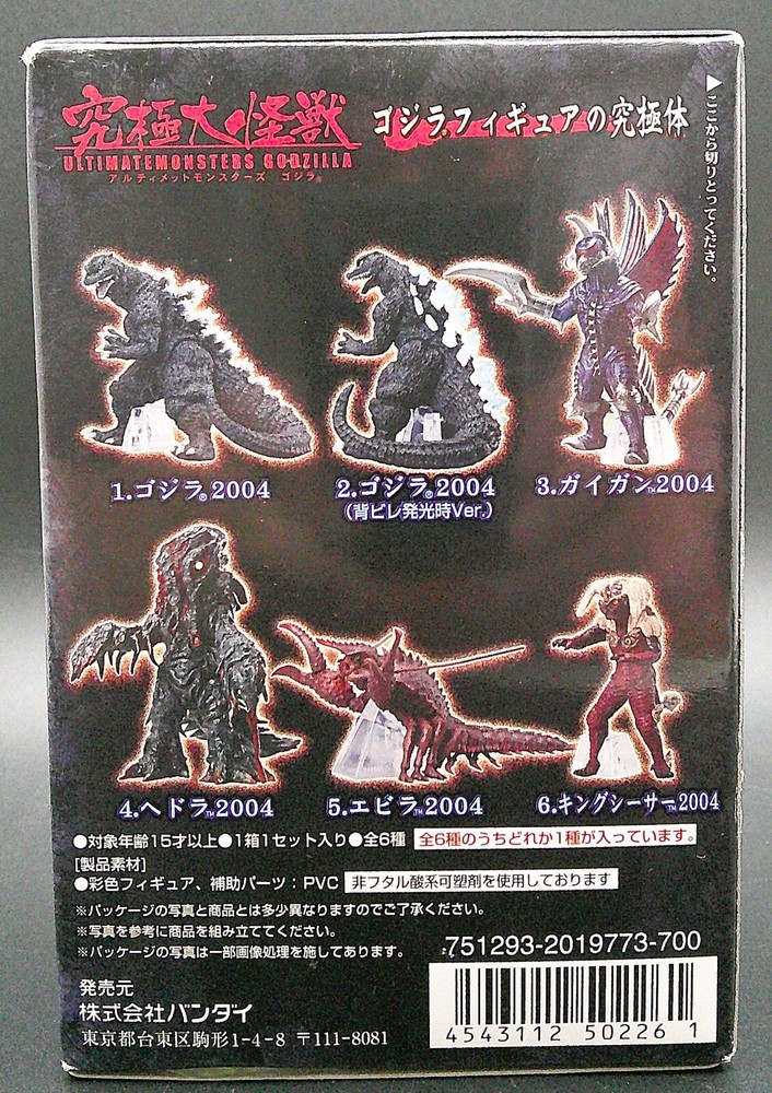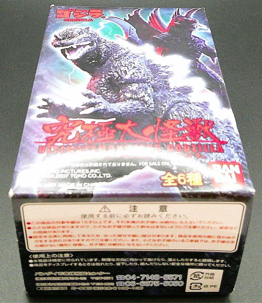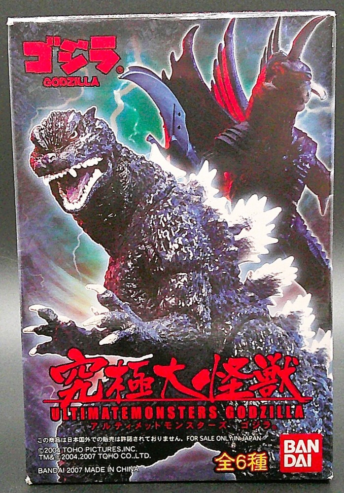 BanDai Ultimatemonsters Godzilla Mystery figure in factory sealed box: I grew up watching Godzilla movies from Saturday afternoon matinees on television and loved them, so many years ago I picked this up at a local comic convention and never opened it. I cant read Japanese so I don't know what is written on the box. As you can see from the pictures, the item is still sealed from the factory, so I do not know what figure is inside . From what I found this is a very rare Godzilla collectible from Japan released in 2007 and most of these I see for sale have been opened. Details of the item(s) listed: Package will/may have typical shelf-wear for its age, i.e. rubbed edges, scratched or scuffed print on graphics, minor curling on the cardboard backing and/or some imperfections/flaws to the blister, plastic shell or bubble packaging. As a collector myself I will never guarantee mint/perfect condition or Action Figure Authority (gradable); if you want mint/perfect, AFA types, I suggest purchasing items that have already been graded with their cert, so you know for sure. If I’m aware of what I may determine any additional and/or significant flaws to either the figure or packaging I will note these and try to include them in the photos as well as price the item accordingly. However, you are the best judge regarding what you would consider flaws so please review all photos closely. Please take time to pull up each of the pictures and look at them in detail so you are fully aware of the condition, the photo’s listed are of the actual item for sale. OTHER: Digital pictures and lighting may enhance color to show detail of figure & package. No International shipping, US only. The item will be packaged with care and shipment tracked to ensure delivery once paid in full; will only ship to registered and confirmed addresses. I will not change the shipping address after the order has been placed . So please ensure the correct shipping address matches the account before placing an order. All items are stored indoors in a smoke and pet free environment. If you have any questions or concerns about the items I have listed, I prefer you reach out to me directly to be addressed prior to purchasing. I realize this may cause you to lose the item for sale, but I’d favor communicating them sooner rather than later. I will respond to most reasonable offers. Thanks for looking and happy collecting.