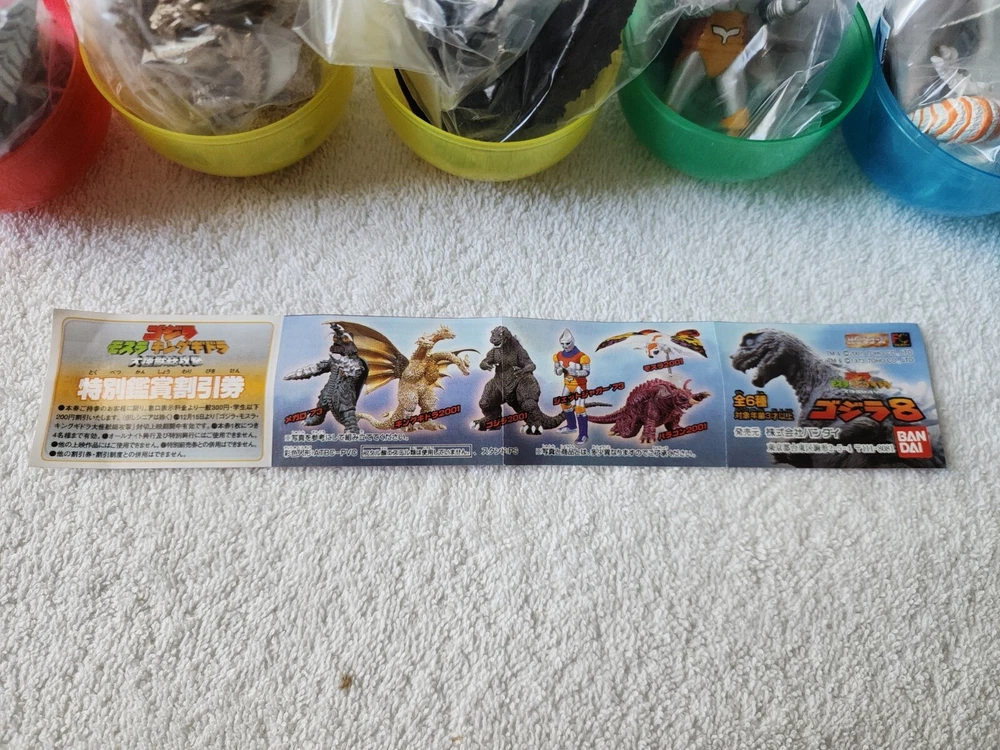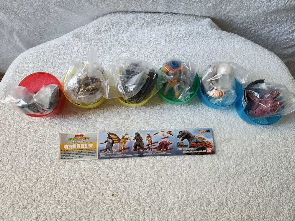 Bandai 2001 Capsule Toys Godzilla HG 8 - Complete set of 6, New In Sealed New In Sealed.Good condition. Take a good look on the pictures. In any question. Please contact me. Thank you..... We will not accept returns for this item unless it is returned in the exact same condition it was sent - new in factory sealed bags, SHIPPING: shipping to United States. USPS :shipping with tracking number "Please make sure shipping address is correct when checking out as the address cannot be changed after order is placed."
