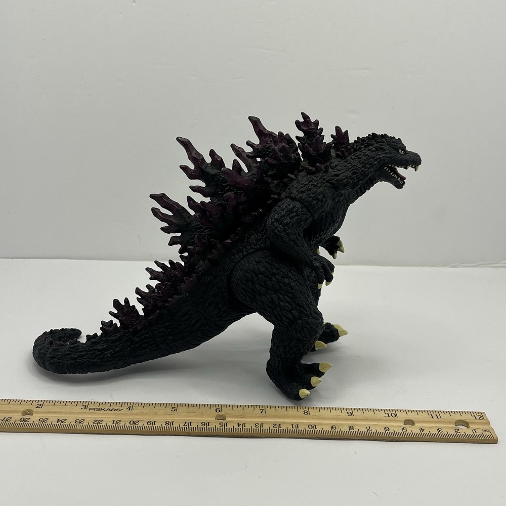 This Bandai 2007 Toho Millennium Godzilla 6" Action Figure is a must-have for any monster toy collection. With its striking purple spikes version, this figure is a great addition to the Godzilla theme. The attention to detail in this figure is remarkable, from the intricate design to the durable materials used in its construction. This Bandai figure is a fantastic representation of the iconic monster, and it will make a great gift for any fan of the Godzilla franchise. Good condition- some wear (see photos) - smoke free home