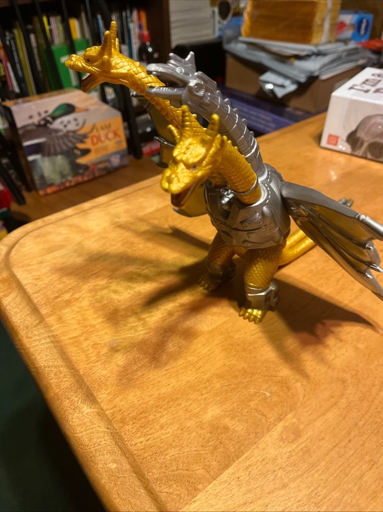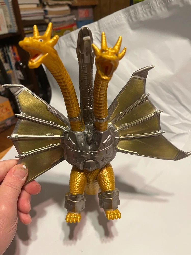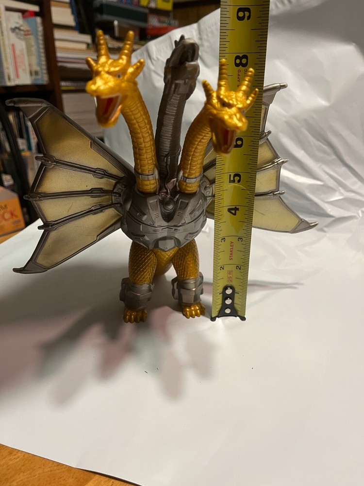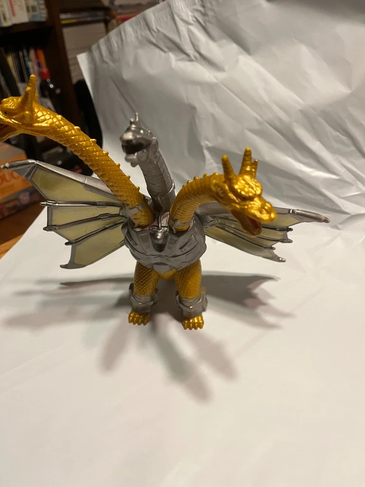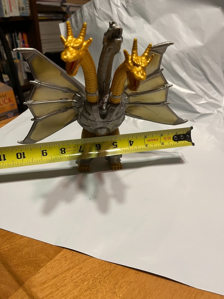 The Bandai 8" MECHA KING GHIDORAH action figure is a toy inspired by the iconic King Ghidorah from the Godzilla vs Kong series. Manufactured in China by Bandai, this action figure features intricate details and is a part of the popular kaiju toy collection. Fans of Godzilla and monster-themed toys will appreciate the design and quality of this figure, which showcases the mighty King Ghidorah in all its robotic glory. Perfect for collectors and enthusiasts of the Godzilla franchise, this action figure brings the epic battles of Godzilla to life in a tangible and visually appealing way.