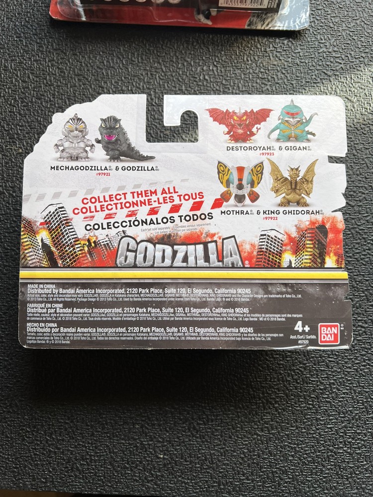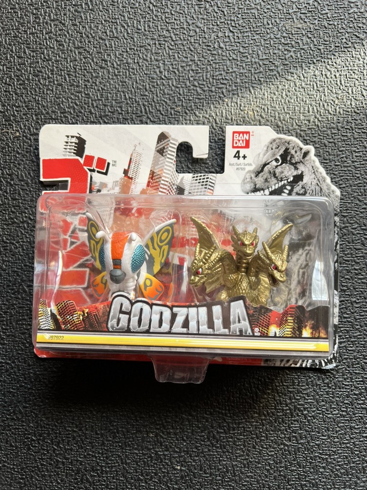 This Bandai GODZILLA 2 Pack Set features action figures of iconic monsters from the Godzilla franchise, including Destoroyah, Gigan, Mothra, King Ghidorah, and Mechagodzilla. The figures are designed in detail and are colored in a vibrant green hue to represent Mothra. As part of the TV, Movie & Video Games theme, these figures are perfect for fans of the Godzilla franchise who enjoy collecting action figures based on their favorite characters from the movies. This set allows fans to recreate epic battles and scenes from the movies in their own displays or dioramas.