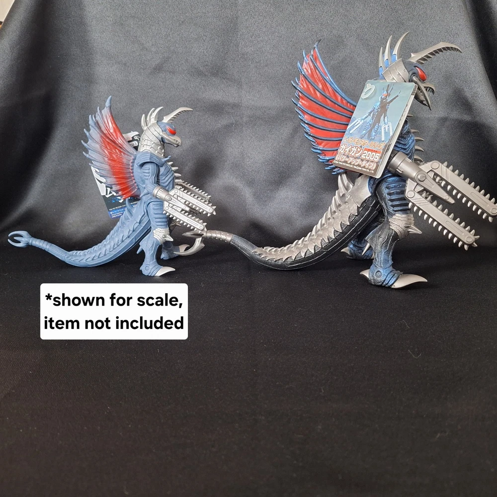 The cyborg menace Gigan strikes again this time upgraded! Appearing as he does in the end of "Godzilla Final Wars" this Large Soft Vinyl figure really stands out! Sporting a beautiful sculpt and paint-job, this is a must have for any collector! ATTENTION! This item is in a used condition and may have faint smells, physical wear, or discoloration on the sculpt and paint job. Vinyl figures have a natural smell. Used items are sold AS IS, so please be sure to review the pictures carefully before purchase. Actual item appearance may vary. All of our items are in hand and in the USA, ready to be shipped quickly to you! WATCH OUT FOR BOOTLEGS! 😱 There are many cheap bootleg godzilla products on ebay! They usually lack a hang tag, and sport simpler, less detailed paint jobs, which is particularly noticeable on the eyes! Our figures are guaranteed authentic and are inspected for damage! Our items are all shipped using a much recycled ♻️ material as possible while maintaining the safety of your purchase. If any issues arise with your order, don't hesitate to contact us so we can make it right for you ✌️