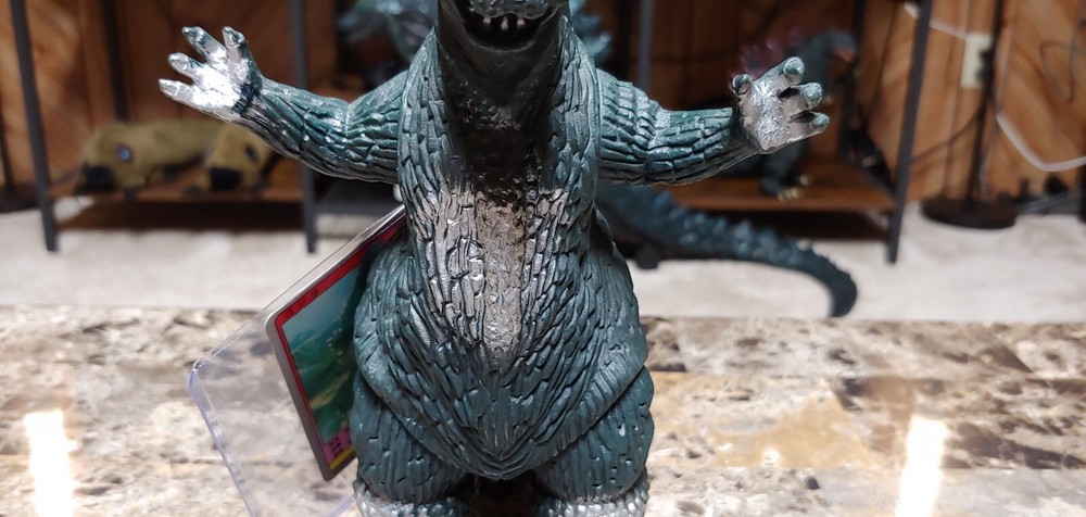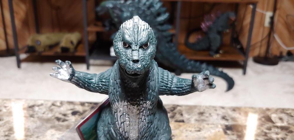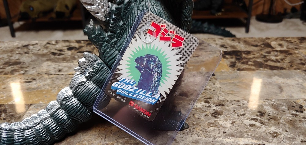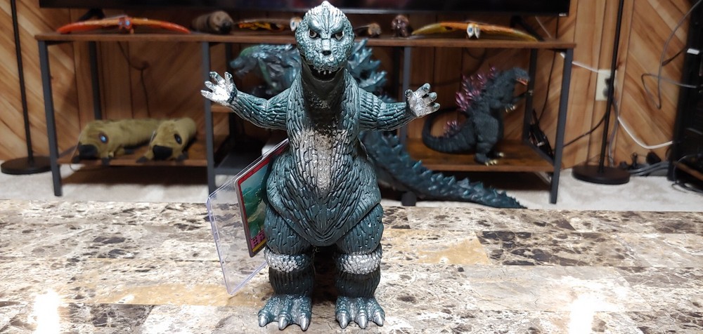 Up for auction is a vintage 8 inch Bandai Godzilla 1964 figure with the tag attached which was released in 1988. One of the "original 5" figures Bandai launched in 1983-84, this is the 88 re-issue version before the 89 destroy all monsters tag was used on the figures as a staple through the 90's. Figure has been well taken care of over the years and is in excellent condition. All joints nice and tight. Tail moves freely but is not loose or wobbly. Card is in fantastic shape. Comes from a smoke/pet free home adult displayed. Winner of auction will be receiving this exact figure. Will be packed very well. No international buyers please. Included in auction are: Vintage 8 inch Bandai Godzilla 1964 figure with tag attached. (1988 release version.)