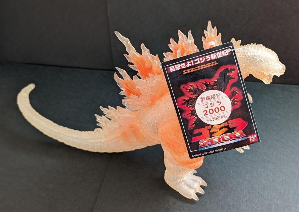 Item Title Bandai Godzilla 2000 Glitter Clear Soft Vinyl Figure Theater Limited Edition JPN Payment Supports managed payments Please pay within 5 days after auction is finished. About Us We are located in Japan. It's our pleasure to make you happy by proposing our recommend item. If you have any questions or request about items, please feel free to ask us. International Buyers - Please Note: -Import duties, taxes, and charges are not included in the item price or shipping charges. These charges are the buyer's responsibility. -Please check with your country's customs office to determine what these additional costs will be prior to bidding/buying. -These charges are normally collected by the delivering freight (shipping) company or when you pick the item up - do not confuse them for additional shipping charges. -We do not mark merchandise values below value or mark items as - gifts - The US and International government regulations prohibit such behavior. Thank you for your understanding.