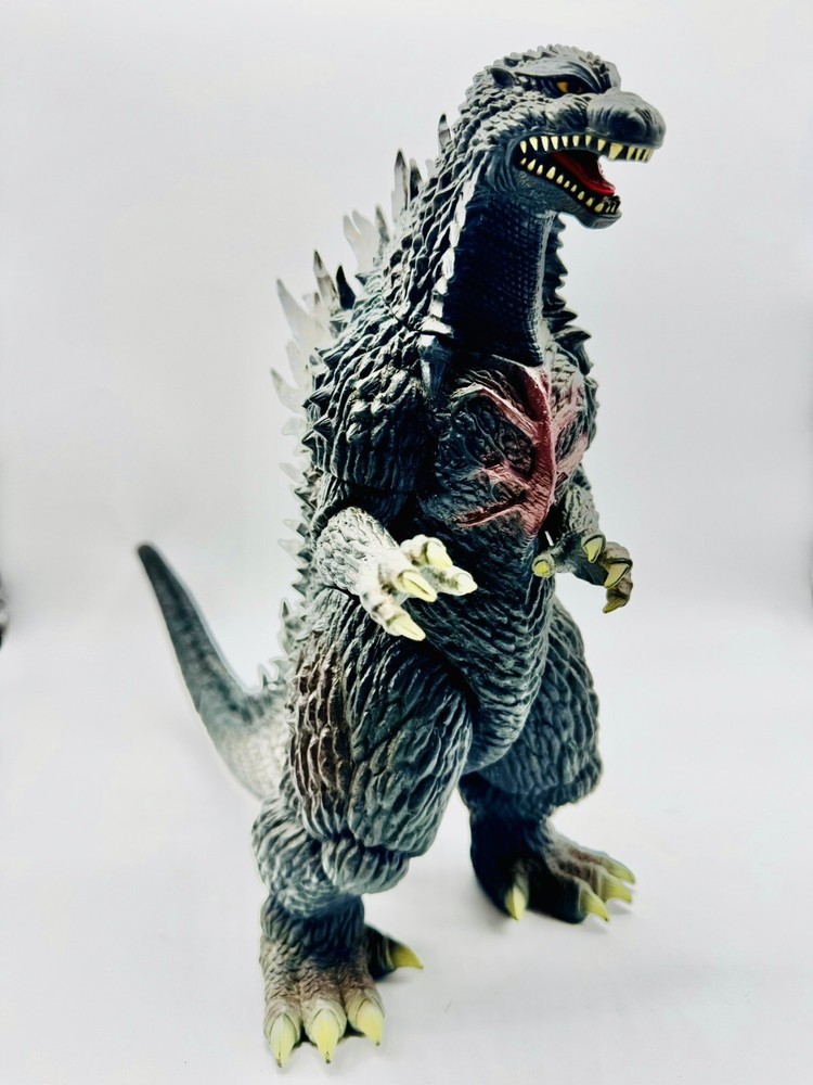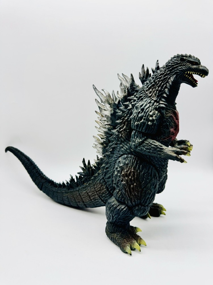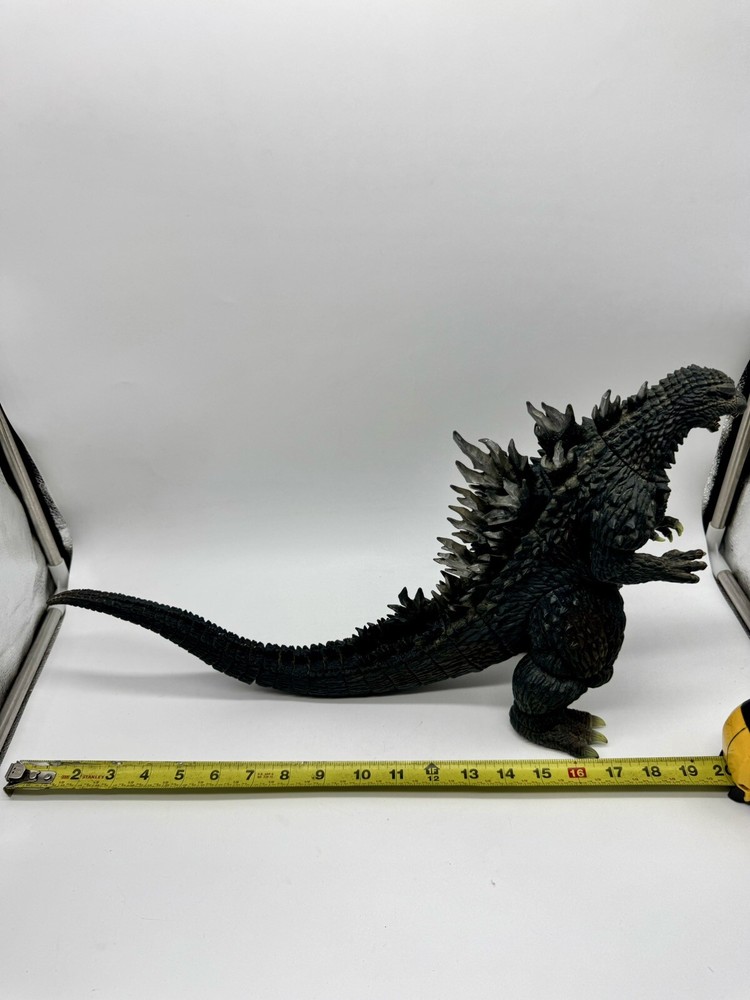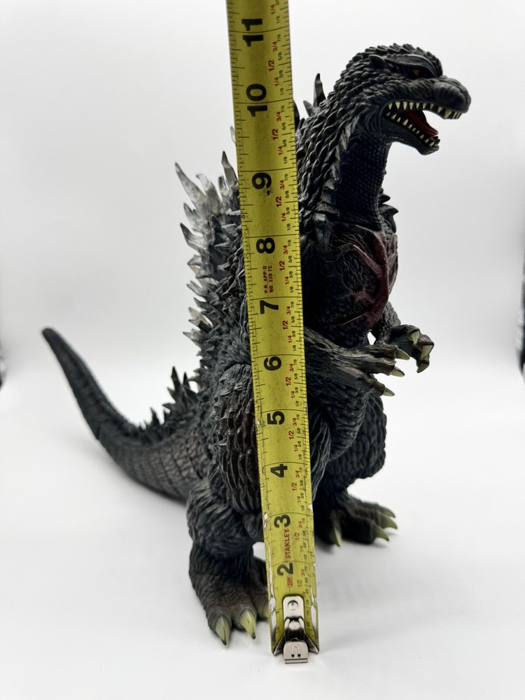 This Bandai Godzilla 2003 vinyl figure is a must-have for any Kaiju fan! At 11 inches tall, it perfectly captures Godzilla's fierce presence. While it shows some wear from display, it's still a rare and complete piece that stands out in any collection. A fantastic find for vintage monster movie lovers!