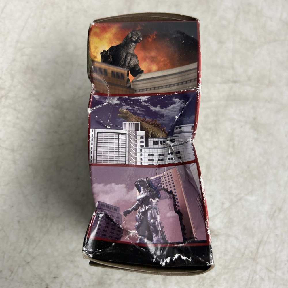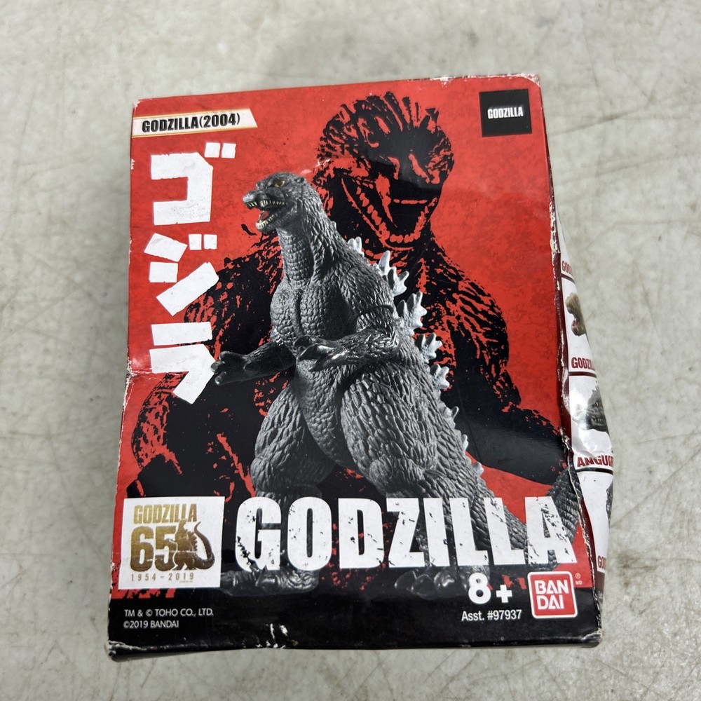 The Bandai Godzilla 65TH ANNIV. 3.5" Figures Wave 2 Godzilla 2004 FINAL WARS is a collectible toy featuring the iconic monster from the Godzilla franchise. This specific figure is based on the Godzilla from the 2004 Final Wars film, making it a sought-after item for fans of the series. The brand Bandai is known for producing high-quality collectible figures, and this product is sure to be a valuable addition to any Godzilla enthusiast's collection. Damaged box