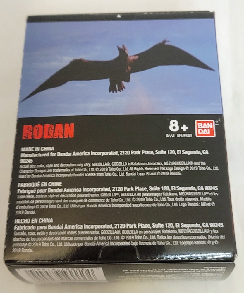 Rodan 3.5 inch figure from the Bandai Godzilla 65th Anniversary series Brand new sealed in package Retired product Please see pictures Please check out our store and use the eBay cart to combine shipping. WARNING: Choking hazard. Toy contains small parts and/or small balls. Not for children under 3 years.