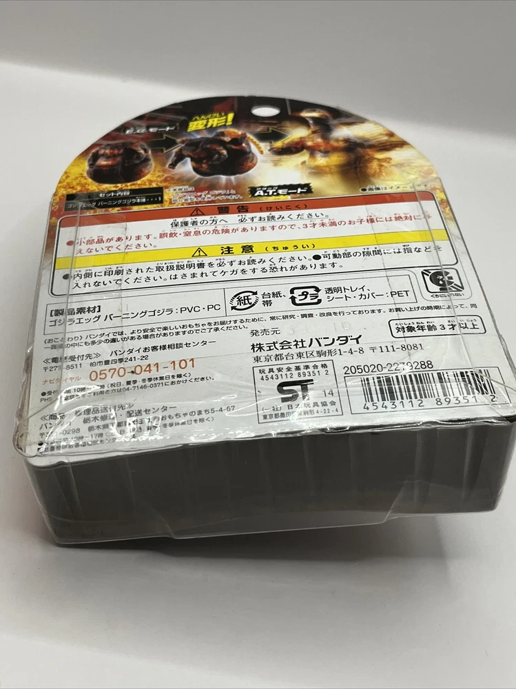 This Bandai Godzilla Egg Burning Godzilla Monster Figure is a must-have for any fan of the iconic Japanese monster. With its captivating design and intricate details, it is sure to be a prized possession in any collection. The figure transforms into an egg, adding an extra element of surprise and excitement. Featuring the popular Godzilla theme and made by Bandai, this toy is perfect for collectors who appreciate quality and attention to detail. Its categorization in "Toys & Hobbies," "Robots, Monsters & Space Toys," "Monsters," and "Godzilla" makes it clear that it is a coveted item among fans. Add it to your collection today and experience the thrill of owning a piece of Godzilla history. New Bandai Godzilla Egg Burning Godzilla Monster Figure Transforms Into Egg F/S Please review picture it is of actual egg. Does have tape how I received. I never opened