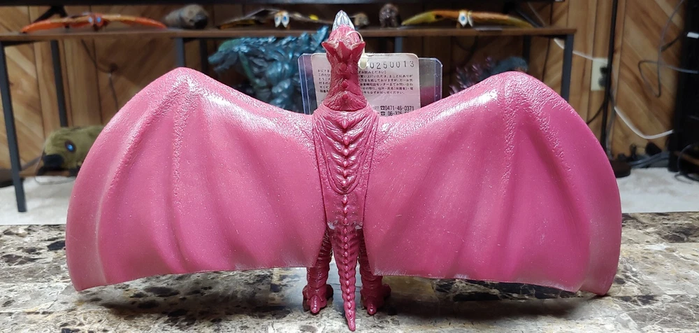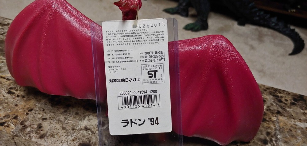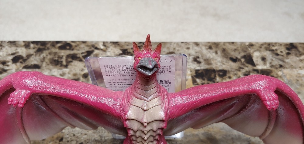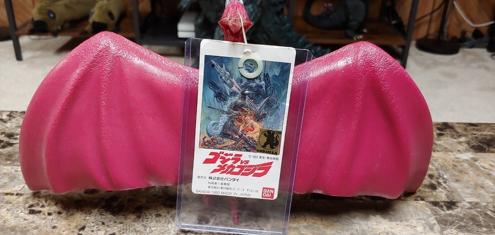 Up for auction is a Bandai Fire Rodan vintage figure from the 1993 film Godzilla vs Mechagodzilla II with the tag attached. It has a 12 inch wingspan and stands 6.5 inches tall, balances well without any help. Fire Rodan is in excellent condition for 30+ years old with only a minor paint rub on the beak as can be seen. Wings and joints are nice and tight. Comes from a smoke/pet free home adult displayed. Winner of auction will be receiving this exact figure. Will be packed very well. No international buyers please. Included in auction are: Bandai Fire Rodan 6.5 inch vintage figure from 1993 with the tag attached