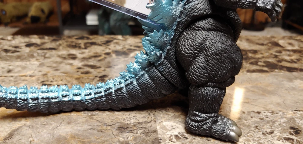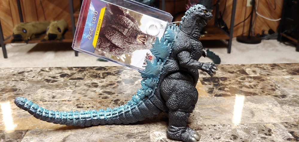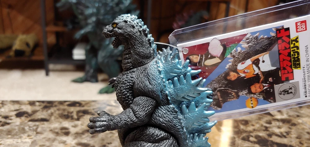 Up for auction is a 1998 Bandai Godzilla island figure with the tag attached. From the 1991 film Godzilla vs King Ghidorah this is the bright metallic blue dorsal fin version which stands roughly 6 inches tall and is 9 inches long. Figure is in excellent condition with the paint still being quite vibrant in color. All joints nice and tight. Comes from a smoke/pet free home adult displayed. Winner of auction will be receiving this exact figure. Will be packed very well. No international buyers please. Included in auction are: 1998 Bandai Godzilla island figure with the tag attached. (Metallic blue dorsal fin version)