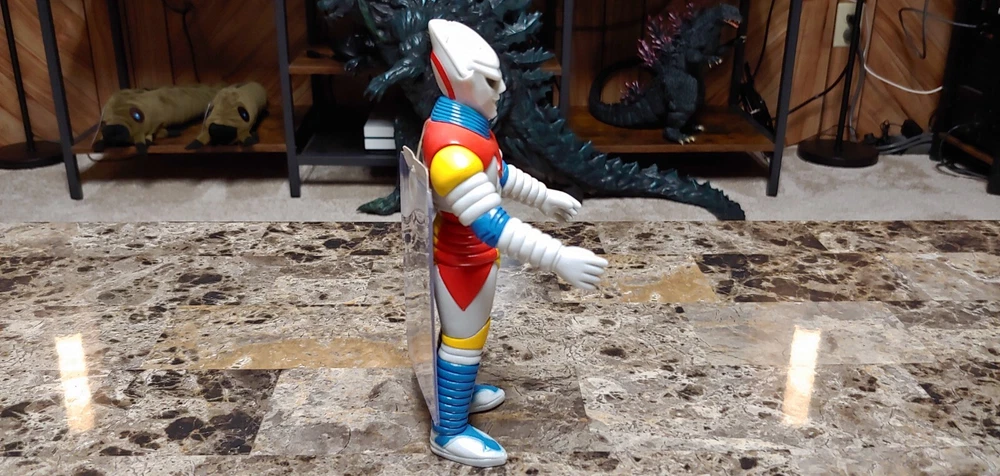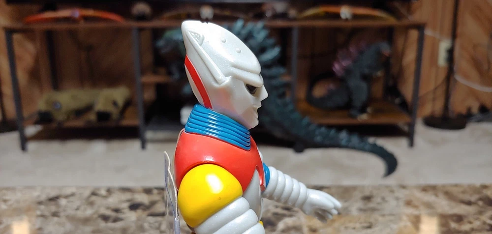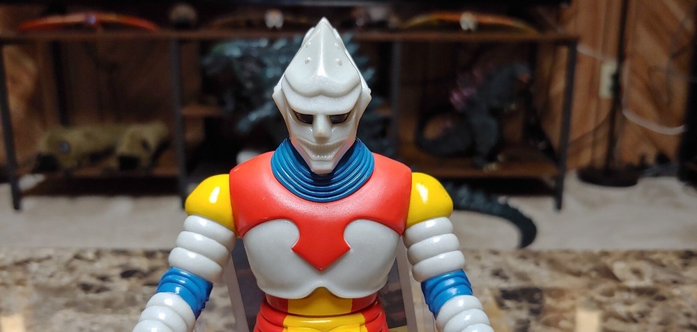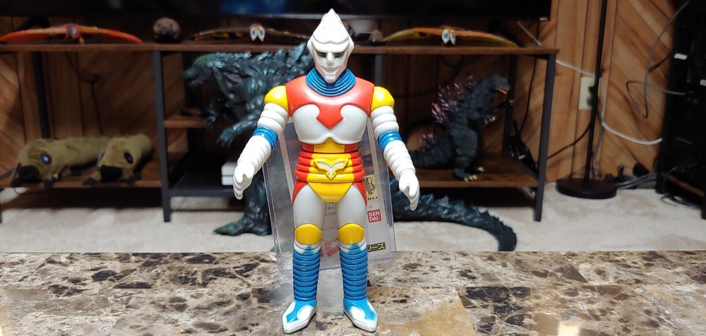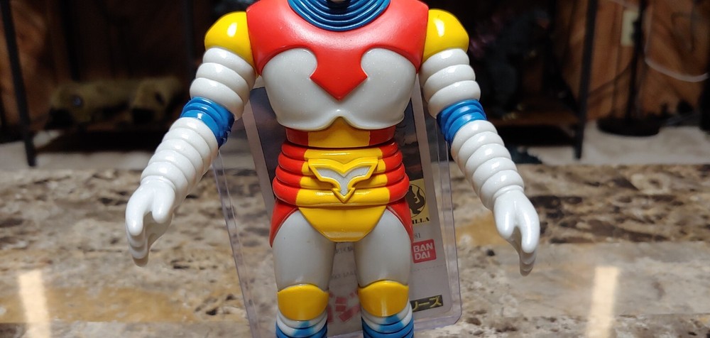 Up for auction is a vintage 1993 Bandai Jet Jaguar figure with the tag attached. Appearing in the 1973 film Godzilla vs Megalon, this figure stands roughly 7.5 inches tall and is excellent condition. Please note his left shoulder has minor paint rubs, and right leg as can be seen in photos. Still looks amazing and displays beautifully for 30+ years old. All joints nice and tight, stands fine on it's own. Comes from a smoke/pet free home. Winner of auction will be receiving this exact figure. Will be packed very well. No international buyers please. Included in auction are: Vintage 1993 Bandai Jet Jaguar figure with tag attached.
