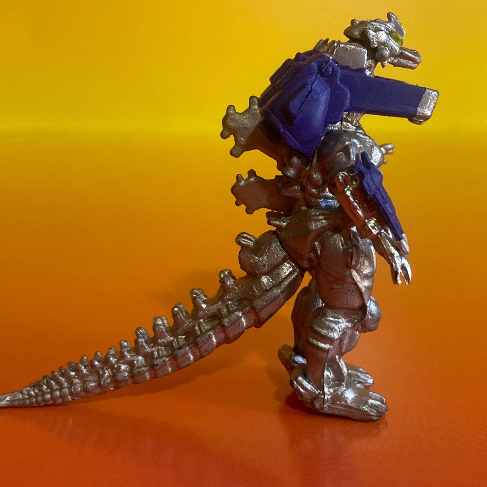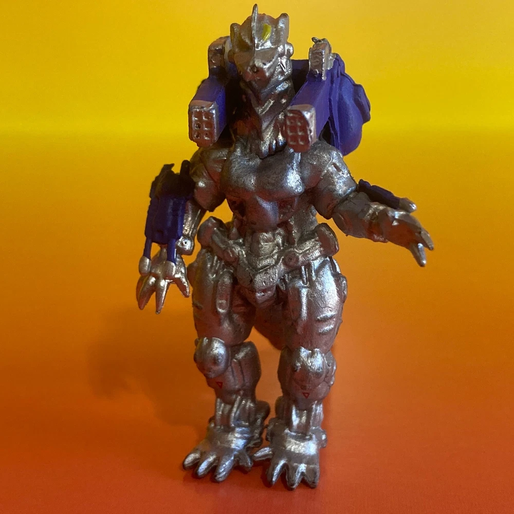 Introducing the Bandai Godzilla Kiryu Mechagodzilla 2" Mini Figure! This collectible item features the iconic character Kiryu Mechagodzilla in a silver and Blue color scheme.The action figure is made of plastic and stands at a height of 2 inches. It is suitable for ages 6 years and up and is a great addition to any Godzilla or Mechagodzilla collection.