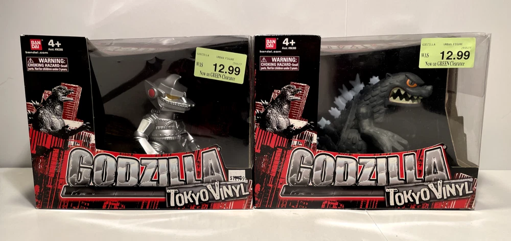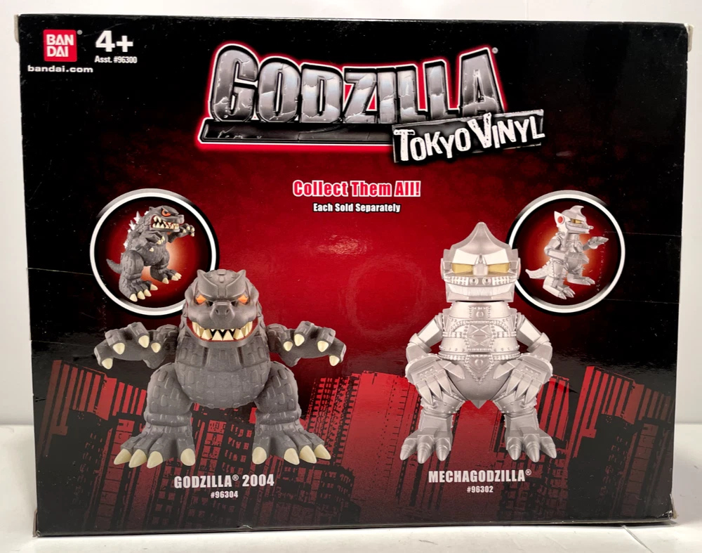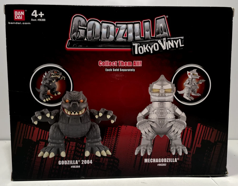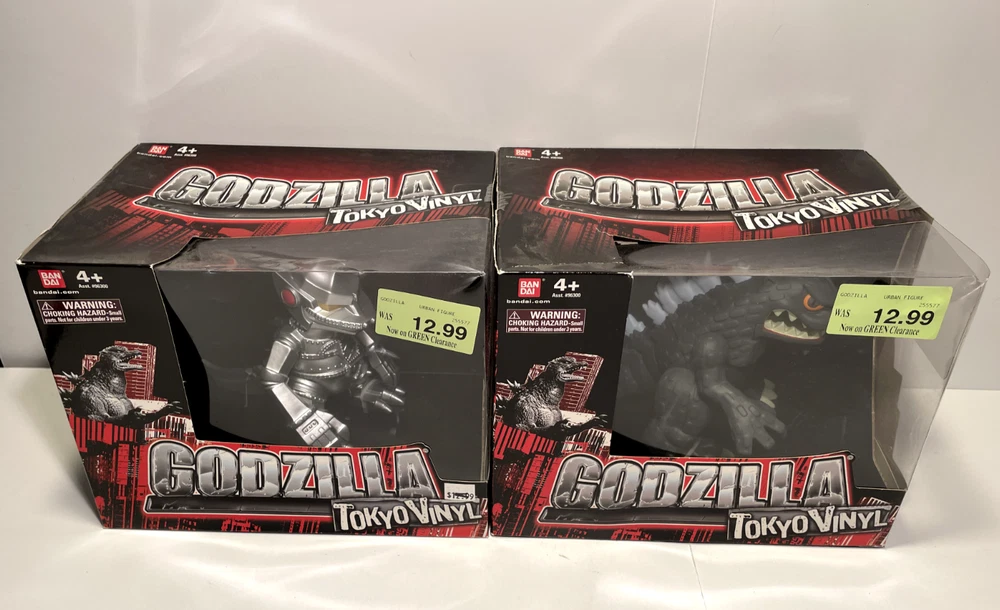 Bandai Godzilla Tokyo Vinyl Figures 2012 Set "Godzilla 2004"& Mechagodzilla Toho + Free Shipping! Godzilla: Tokyo Vinyl - Godzilla 2004 & MechaGodzilla - BanDai - 2012 - Vinyl Action Figure -NEW *CONDITION: Brand New Sealed Set of Godzilla Tokyo Vinyl Figures of Godzilla 2004 & Mechagodzilla in Box. The Boxes have a Green 12.99 Clearance Sticker on the front of each of the boxes. The Top of each of the boxes have a little bend/curve from storage. The Front Top Right Clear Corner of the Godzilla 2004 box has a Cracked Hole Corner...Please See the Last Two Pics with the Damaged Corner Circled in Yellow. Please see all the pix for overall condition of the Two Godzilla Figures... Bandai Creation's Tokyo Vinyl is a toy line introduced in early 2012, along with the Fusion Series and wave 8. The kaiju in this toy line can be easily told apart from the regular series and the Fusion Series because the monsters look like chibis. To date, the Tokyo Vinyl line has only two figures: FW Godzilla and the original Mechagodzilla.