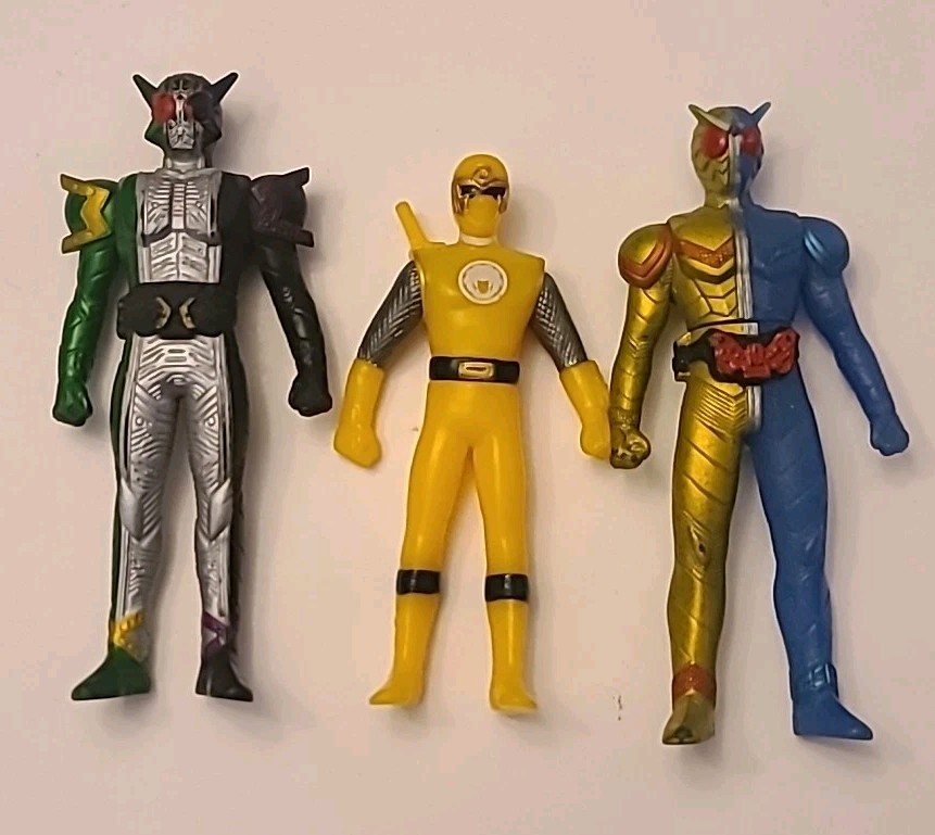 KAMEN RIDER lot of 11 action figures. 2 figures in new condition. Good condition. In some cases, please expect some minor stains or deterioration from aging. Please see the photos for the condition of the figures before buying. Size approximately 3½"-4"tall. L55 - Vinyl action figure. Bandai - Made in China. Lot is sold as lot,not individually. I am happy to combine shipping if you purchase more than one item at once. Please request an invoice before paying for multiple items to get the best possible shipping price. Figure comes from a smoke/pet free home. Thanks for looking.